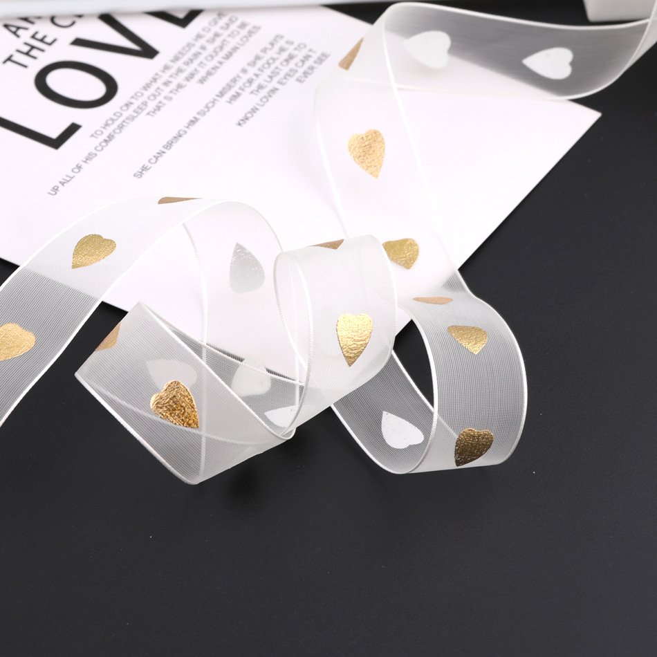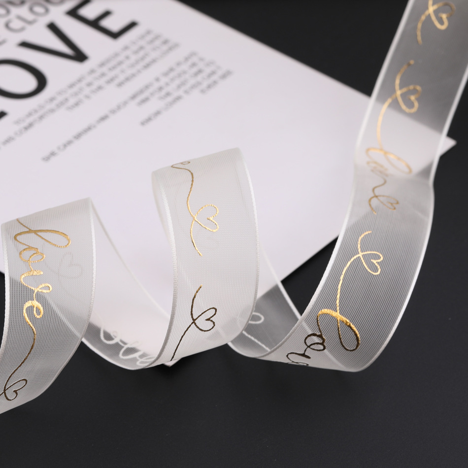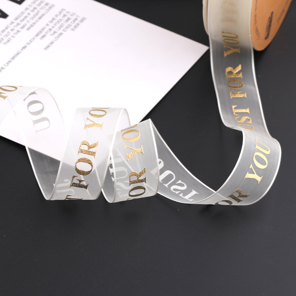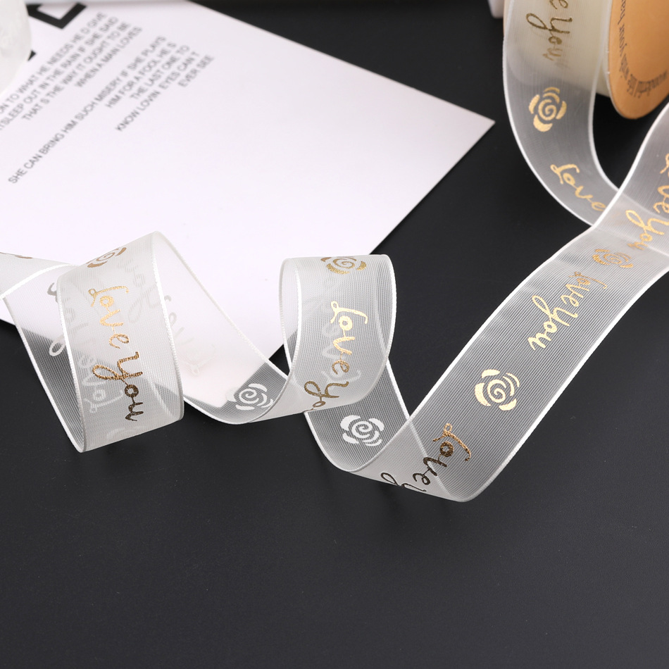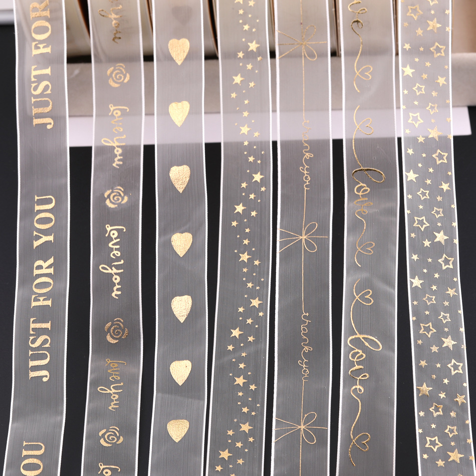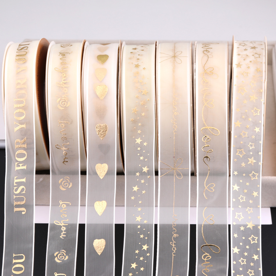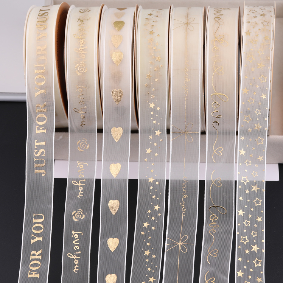 2.5cm Organza 핫 스탬핑 영어 리본 꽃 케이크 베이킹 선물 상자 포장 리본 쥬얼리 작은 액세서리