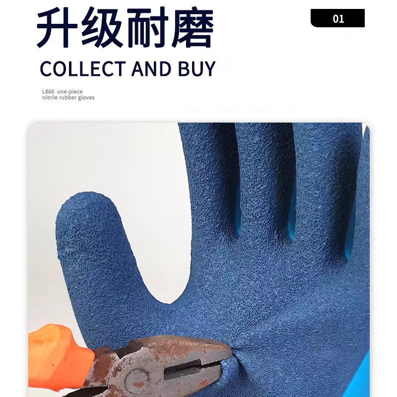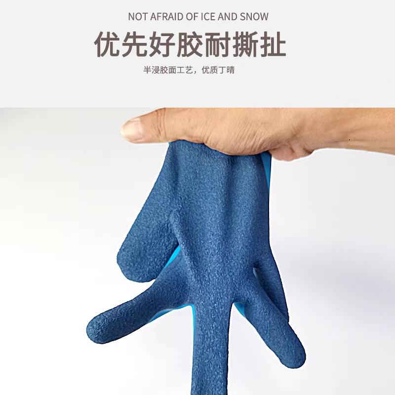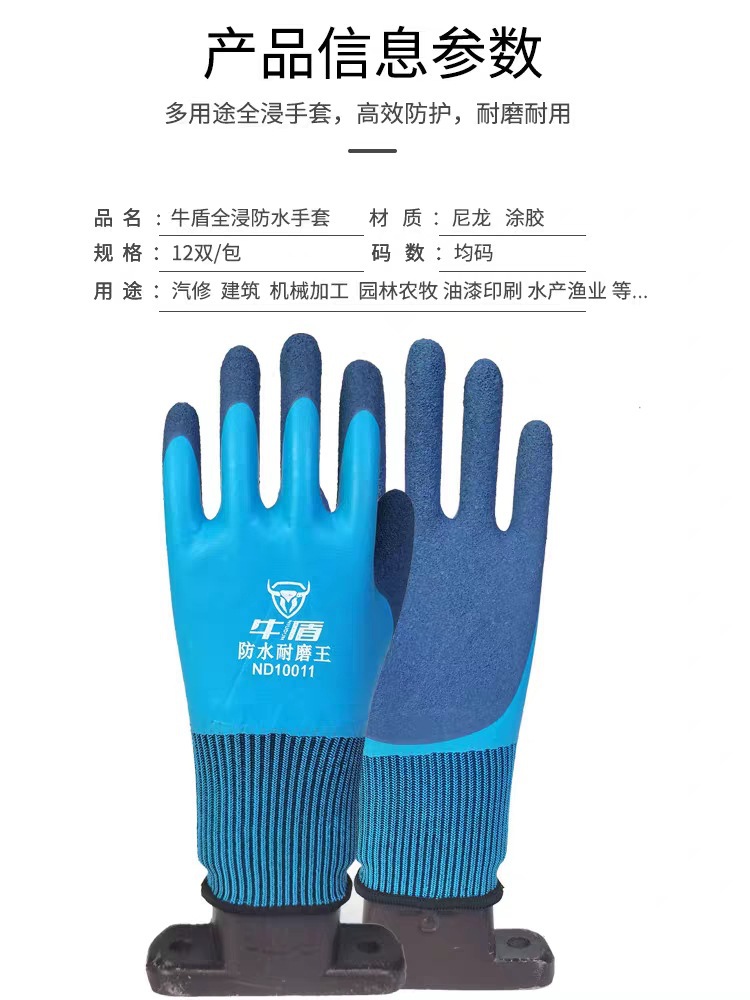 Niudun 완전 침수 블루 방수 노동 보호 장갑 내마모성 미끄럼 방지 발포 양면 침수 건설 현장 건설 보호 장갑스토어 가기