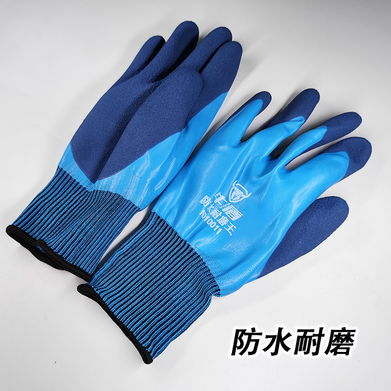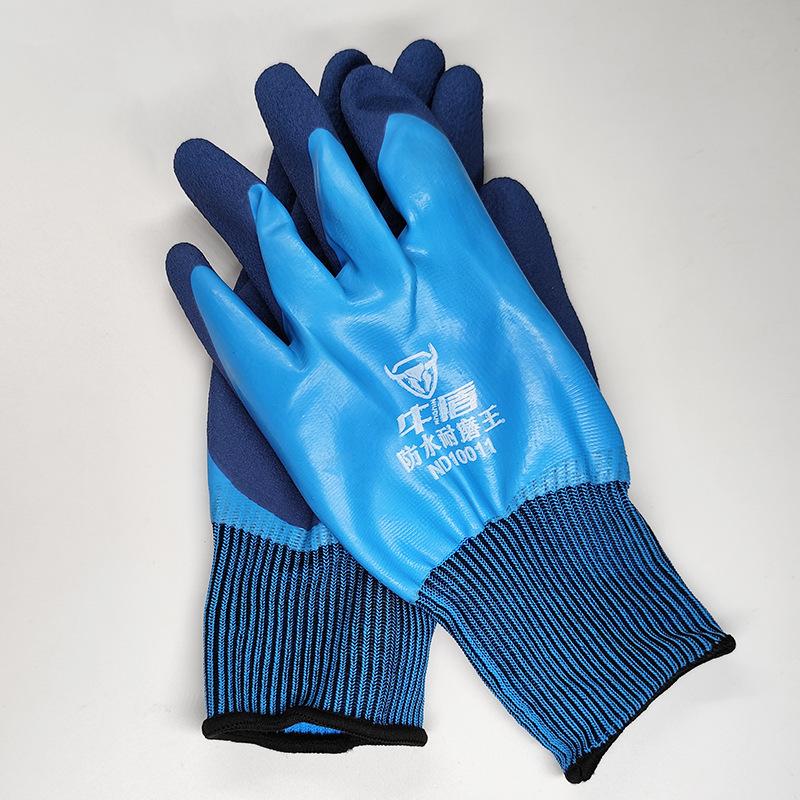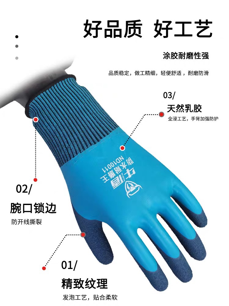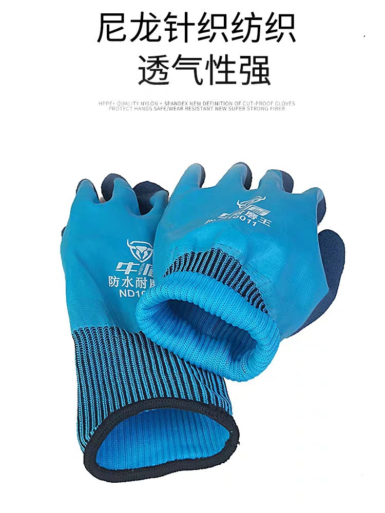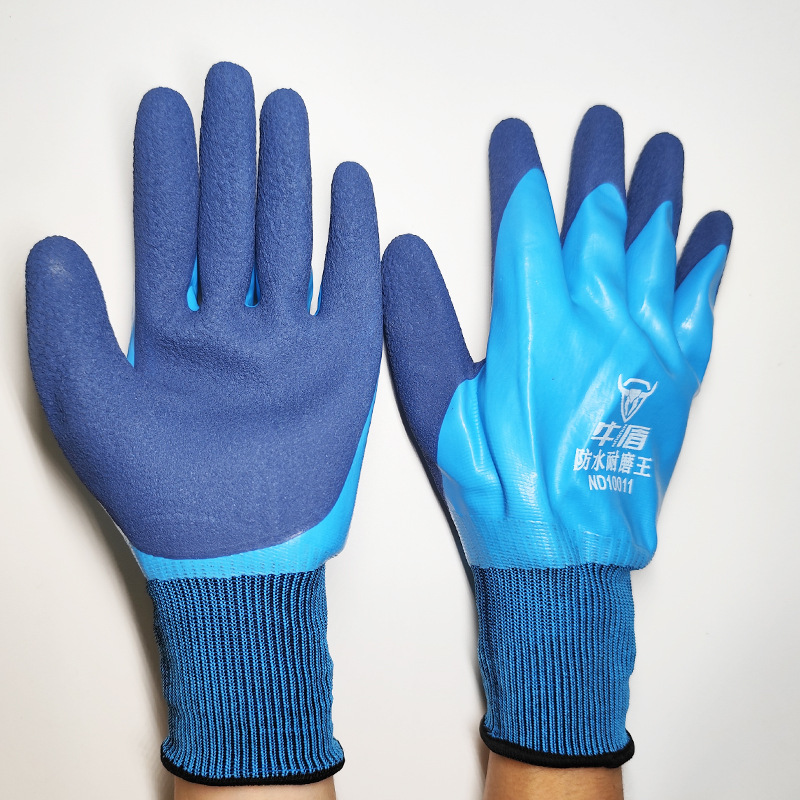 Niudun 완전 침수 블루 방수 노동 보호 장갑 내마모성 미끄럼 방지 발포 양면 침수 건설 현장 건설 보호 장갑