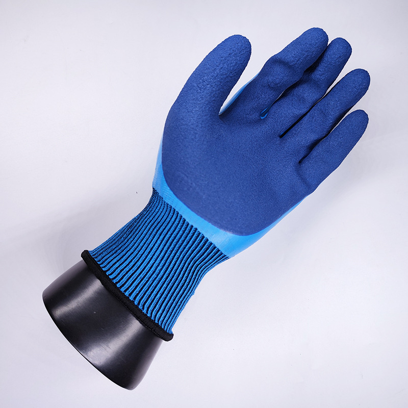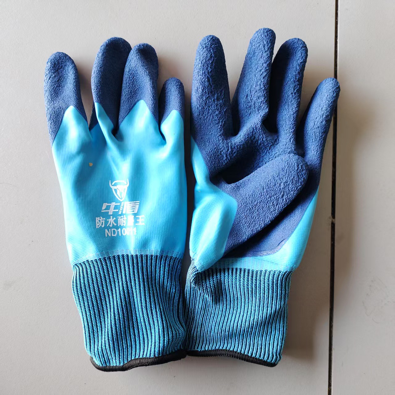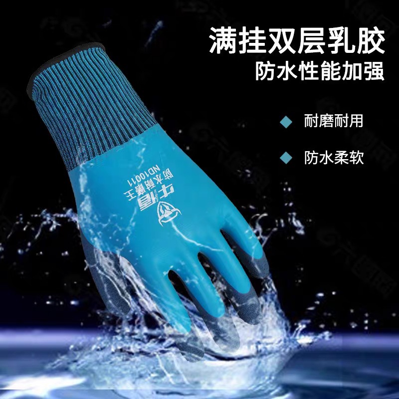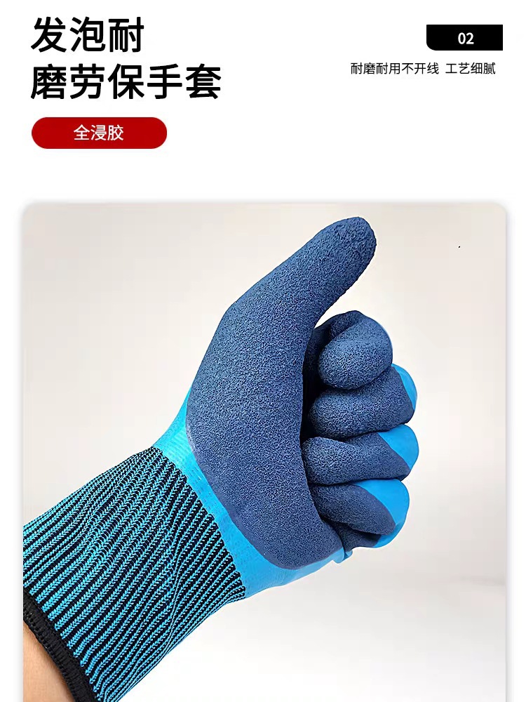 Niudun 완전 침수 블루 방수 노동 보호 장갑 내마모성 미끄럼 방지 발포 양면 침수 건설 현장 건설 보호 장갑