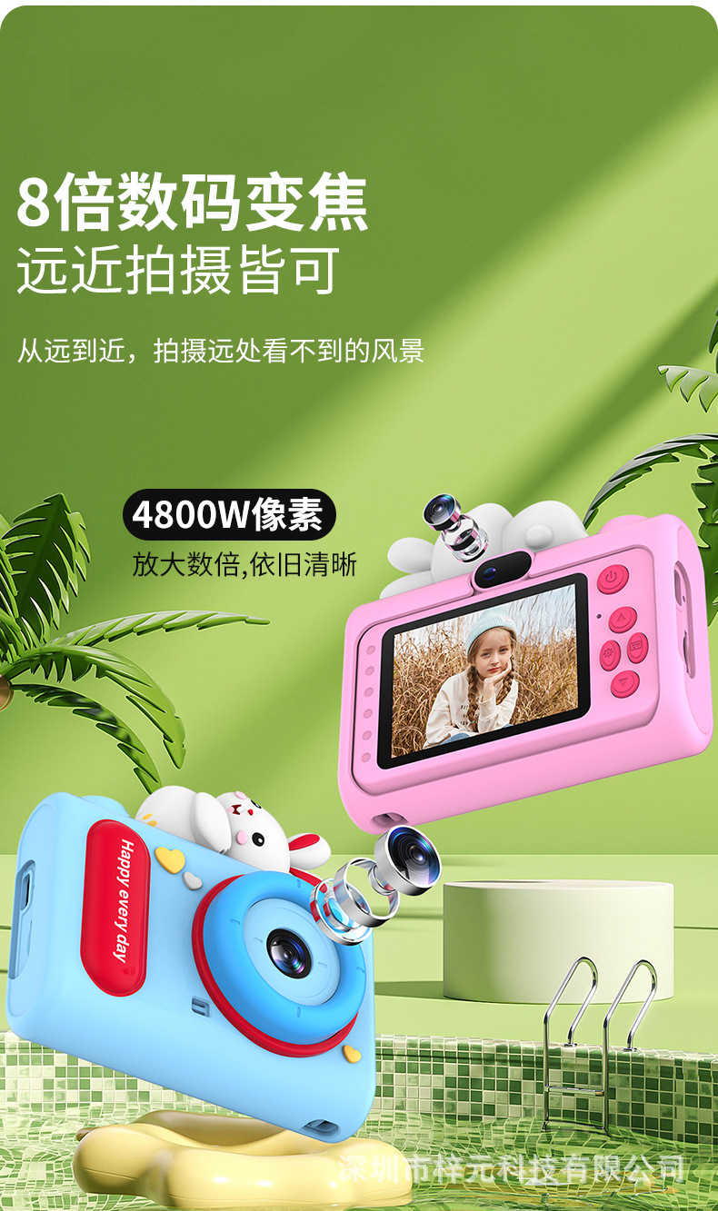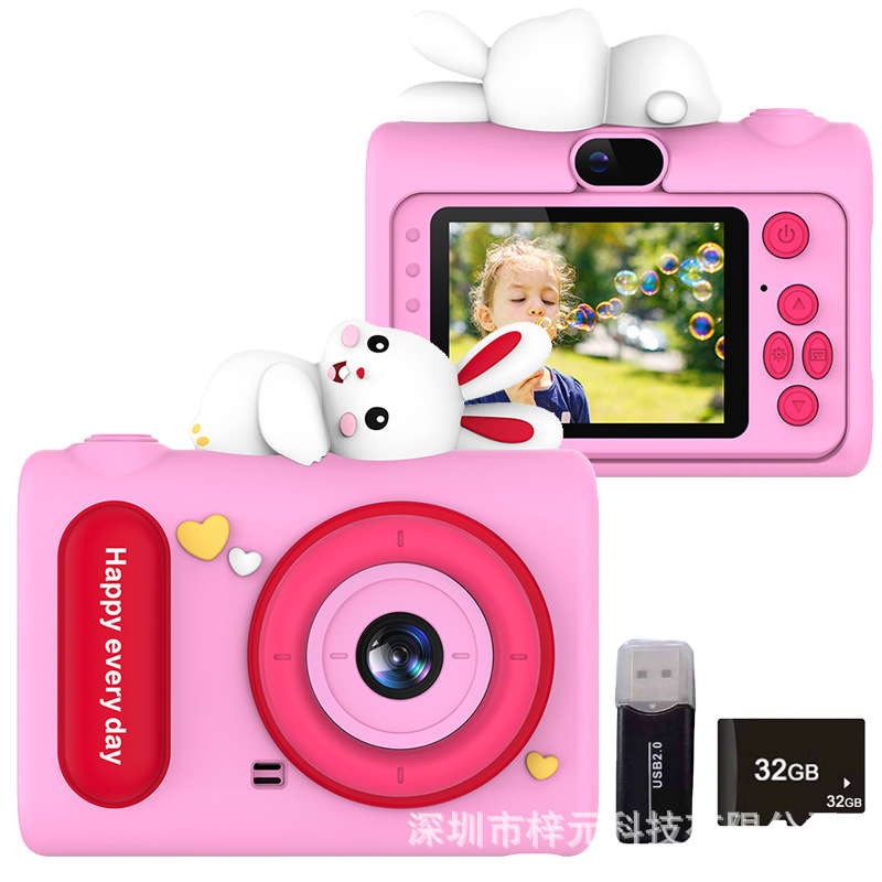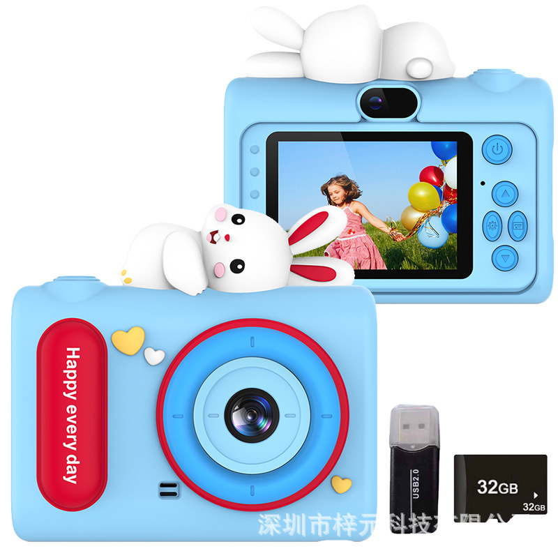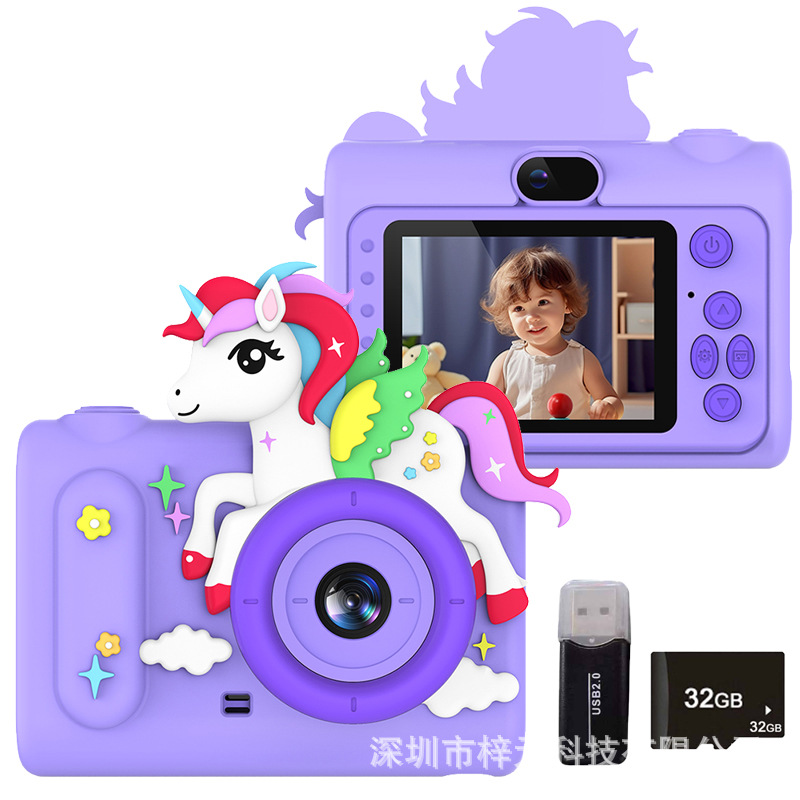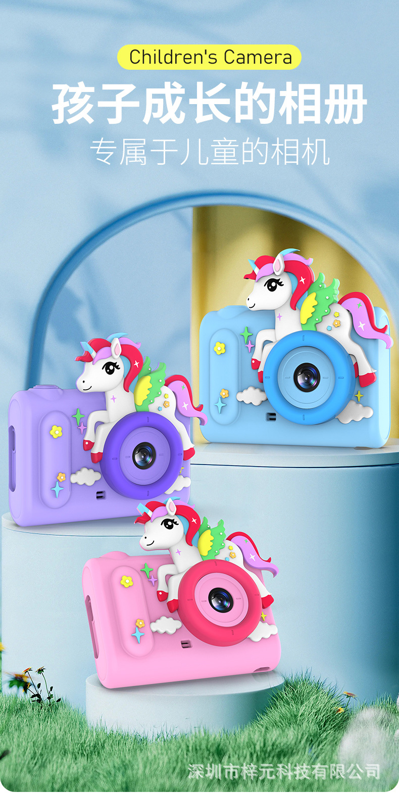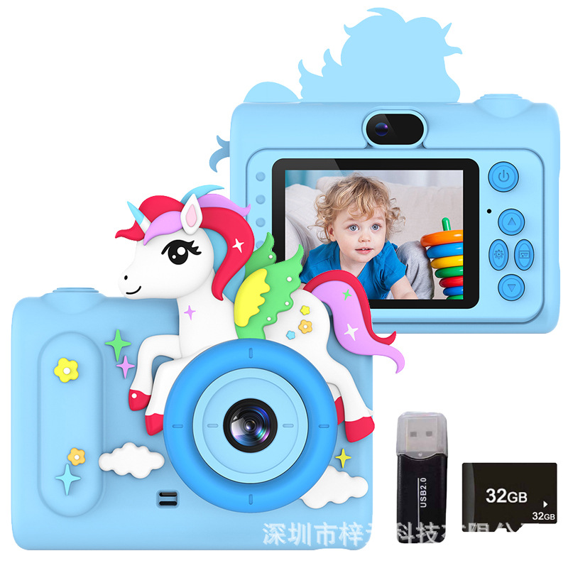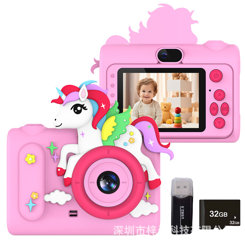 새로운 어린이 미니 카메라 입체 유니콘 토끼 실리콘 보호 커버 8배 줌 듀얼 카메라 장난감스토어 가기