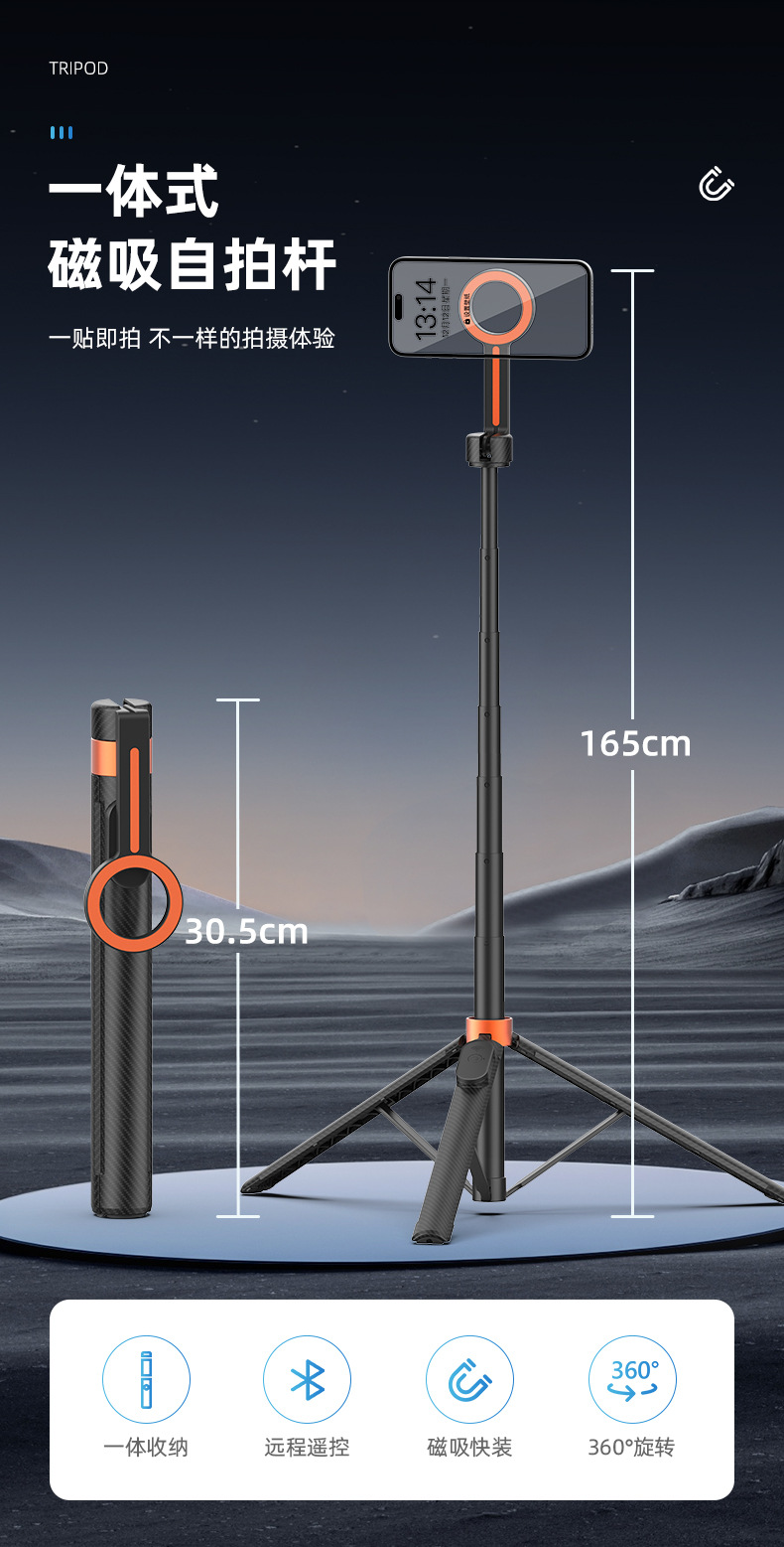 마그네틱 셀카 스틱 MagSafe 휴대 전화 스탠드 블루투스 라이브 vlog 삼각대 휴대 전화 삼각대