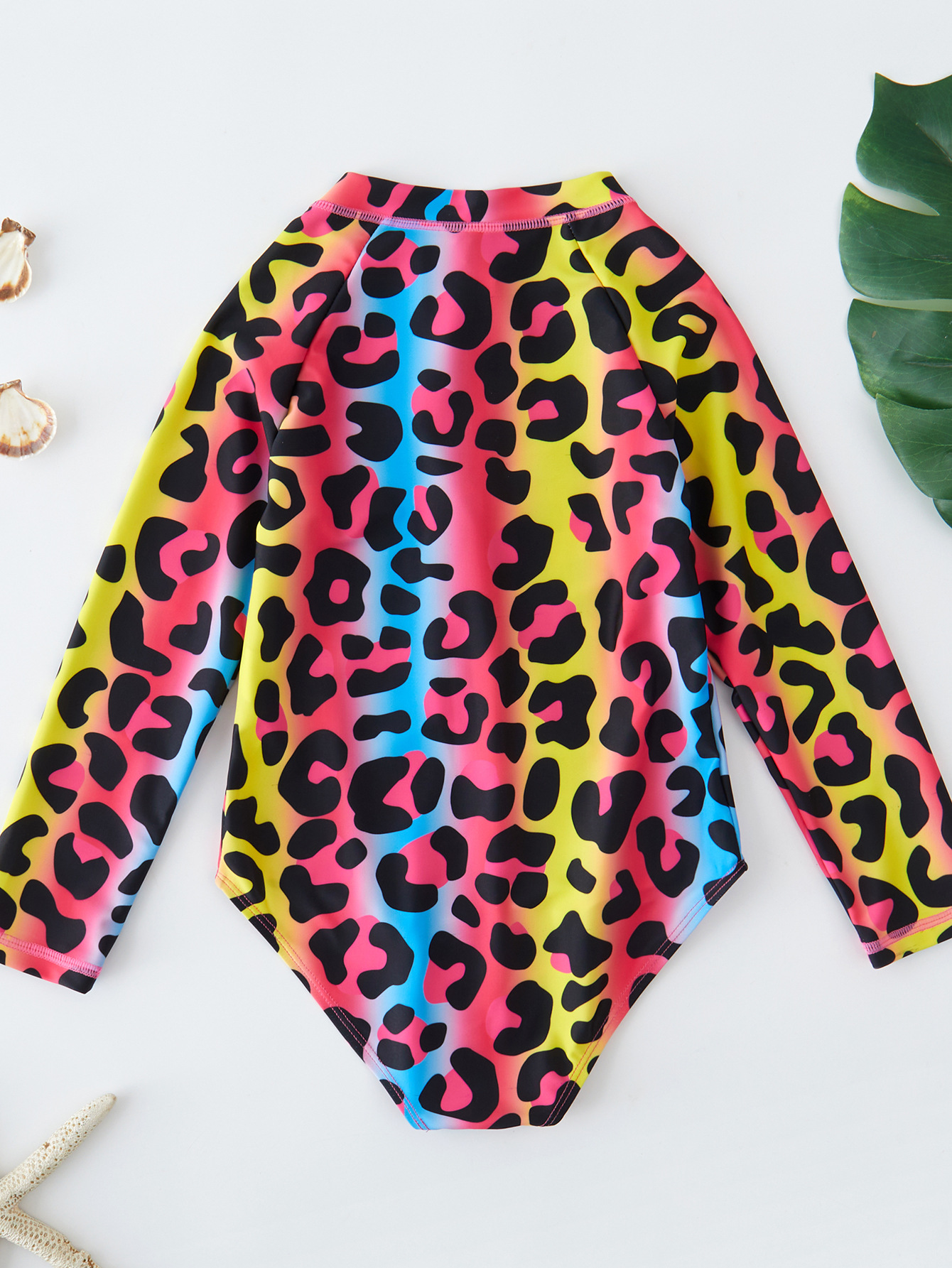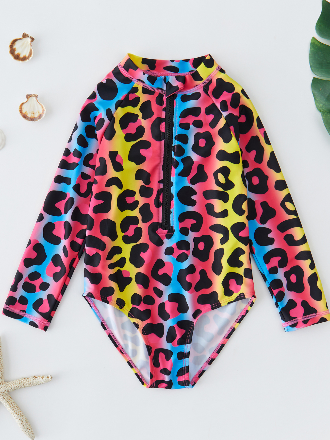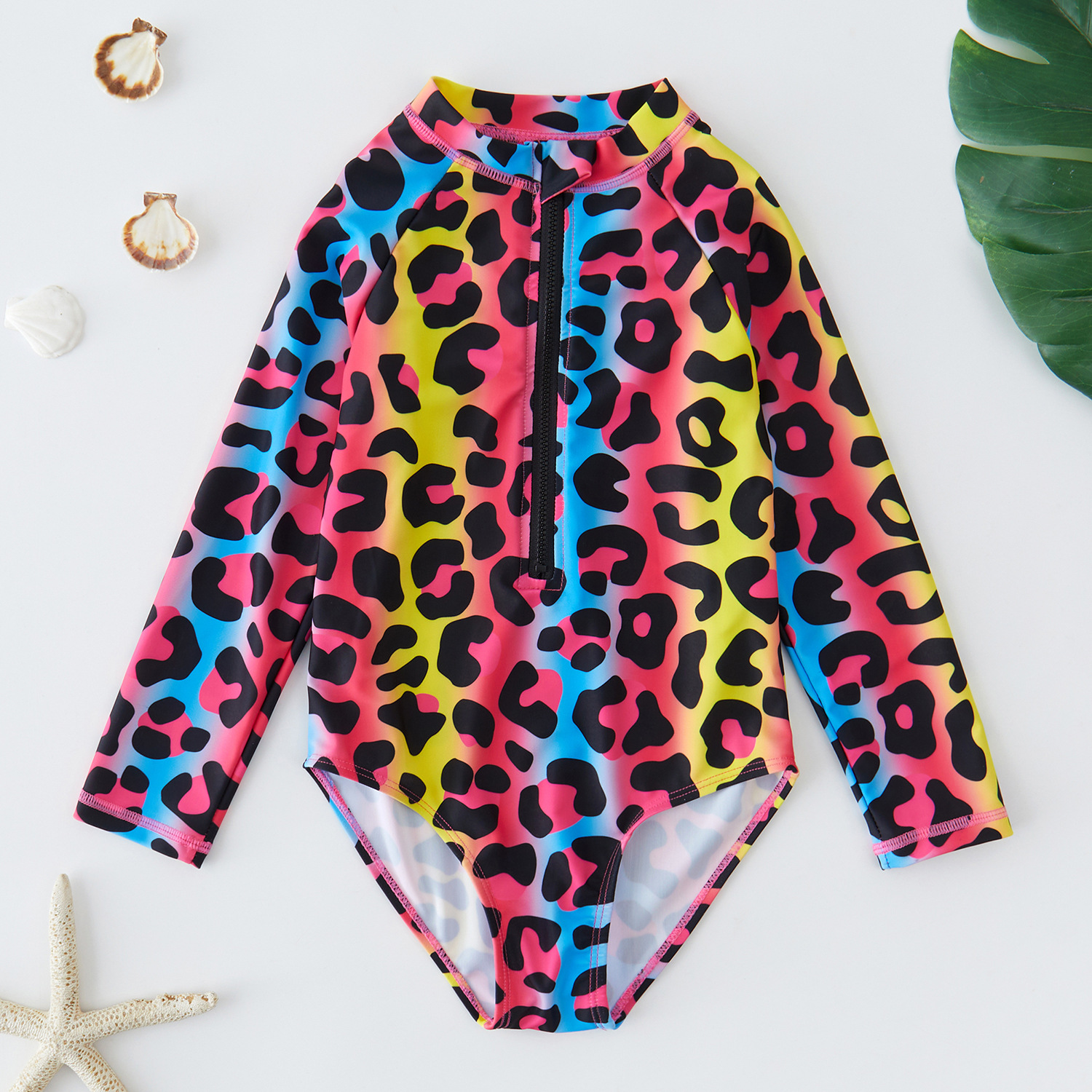 신형 여자 수영복 4 ~ 9 세 어린이 원피스 긴팔 그라디언트 컬러 레오파드 원피스 빠른 건조 서퍼