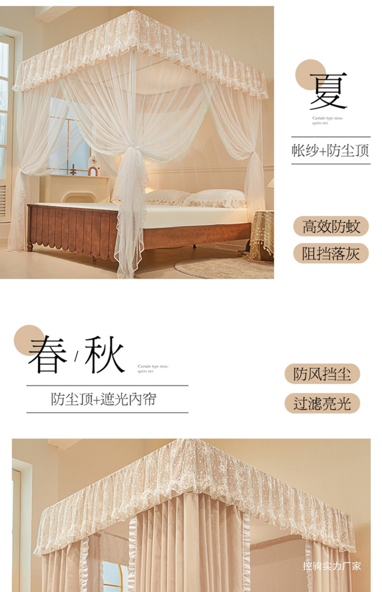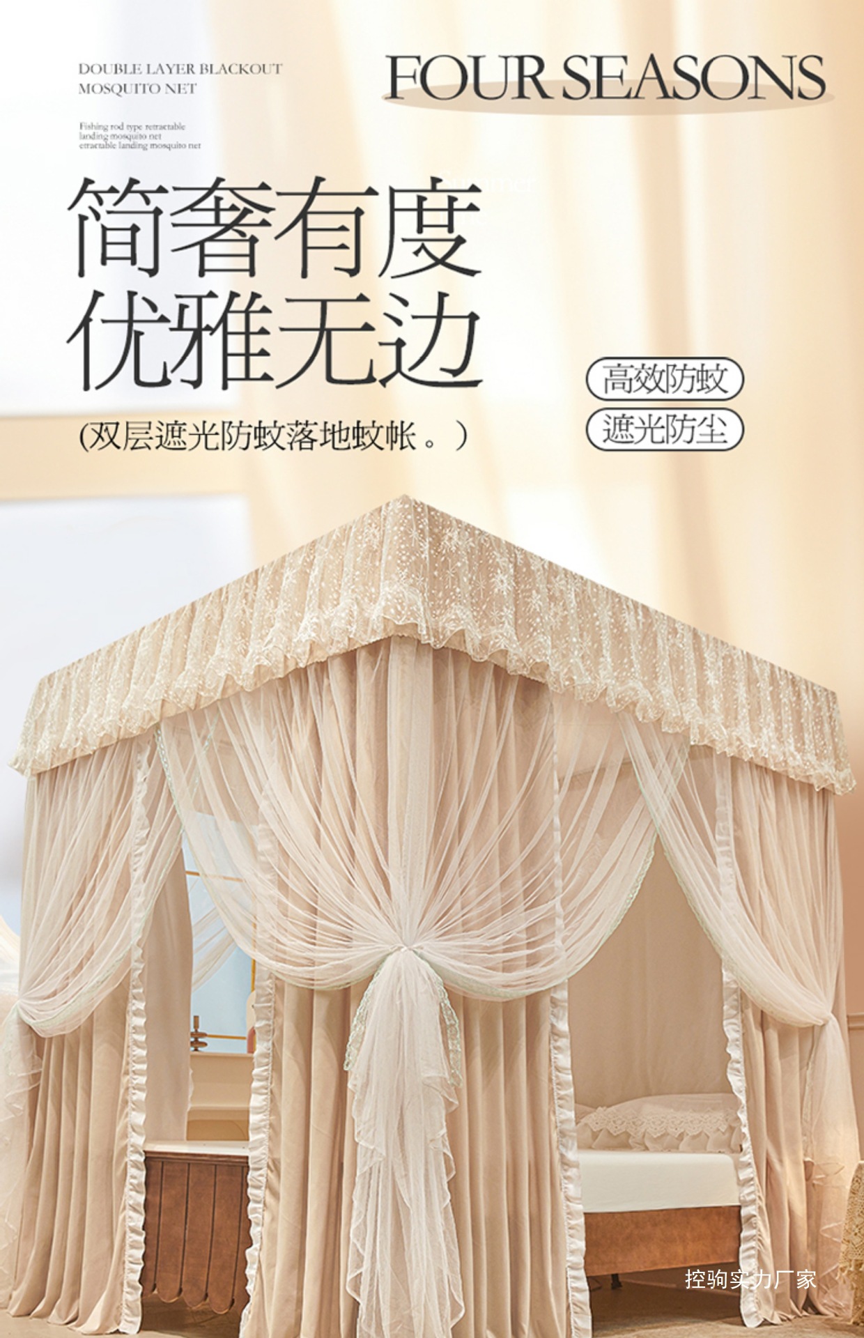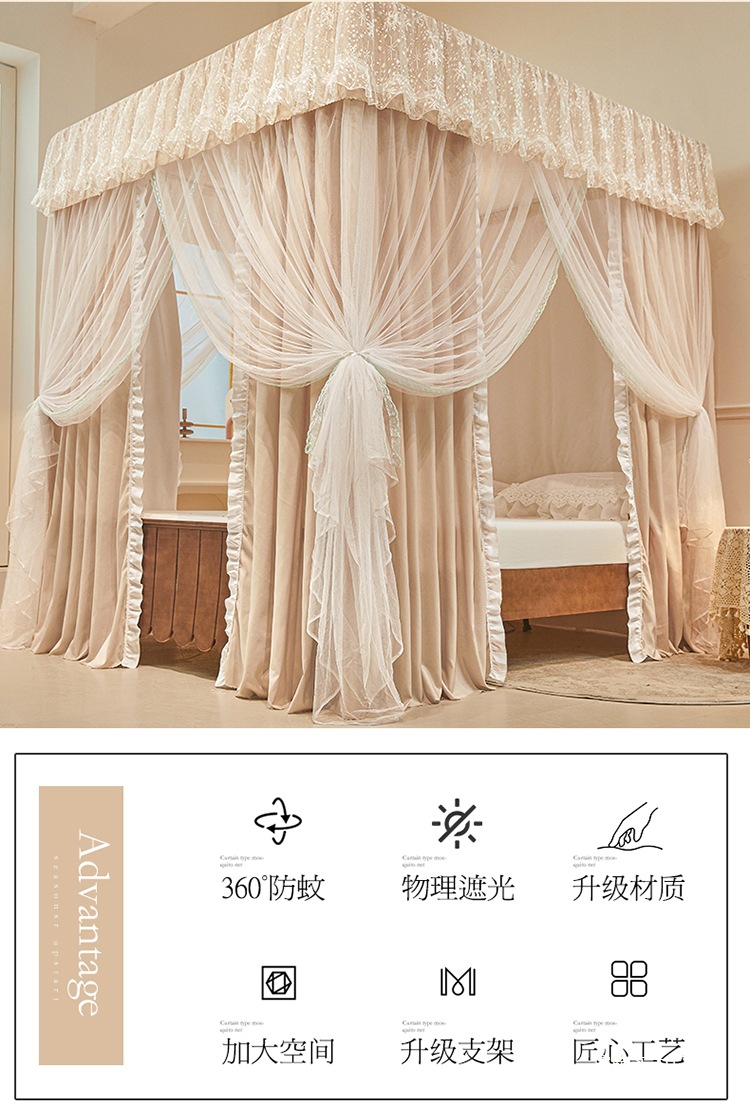 1두꺼운 빛 차단 침대 커튼 공주 스타일 모기장 폐쇄형 일체형 방진 1.68m m 더블 침대 가정용스토어 가기