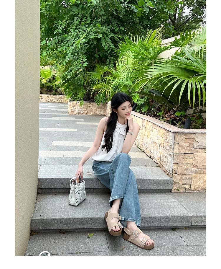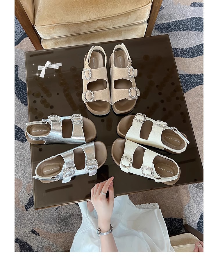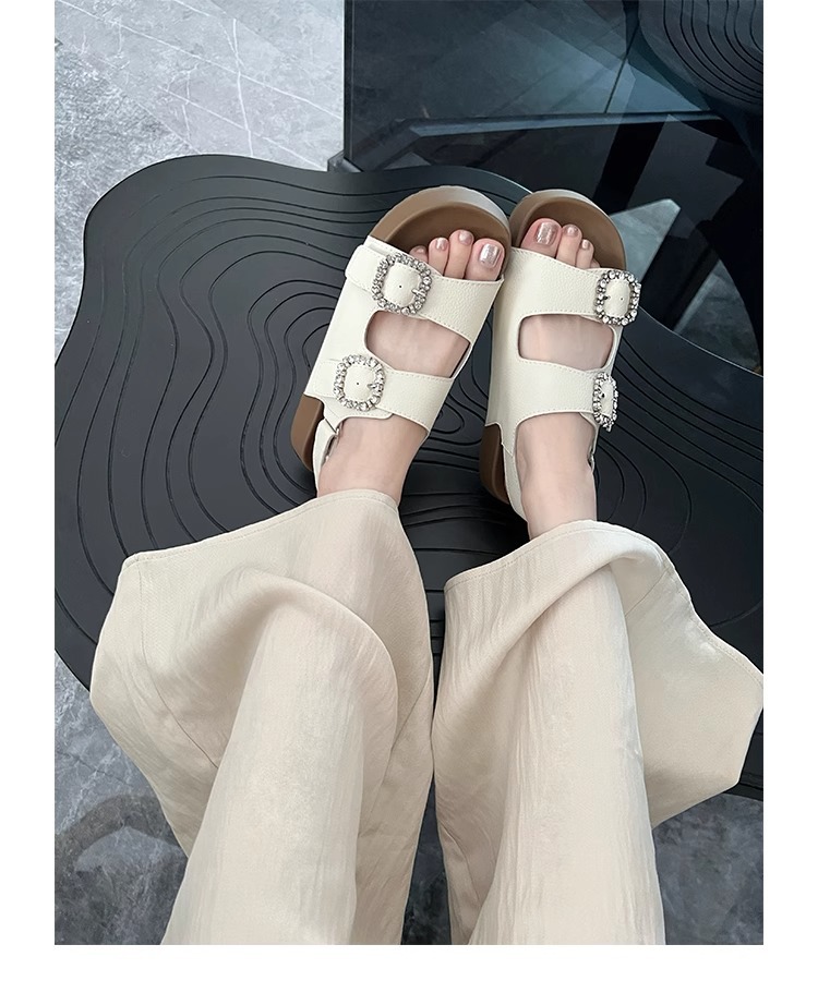 가게 주인 추천 아내! 2025 최신 다목적 두꺼운 밑창 샌들 여성용 둥근 발가락 플랫폼 신발 스퀘어 버클 비치 슈즈스토어 가기