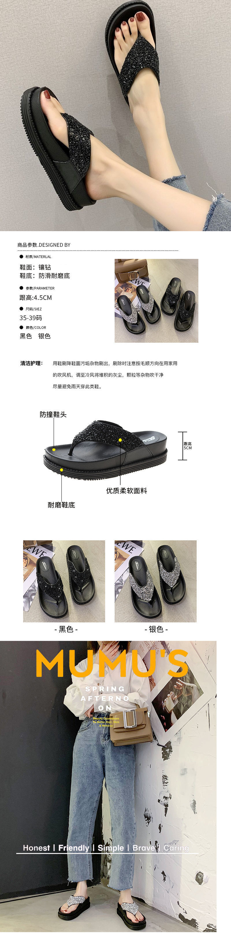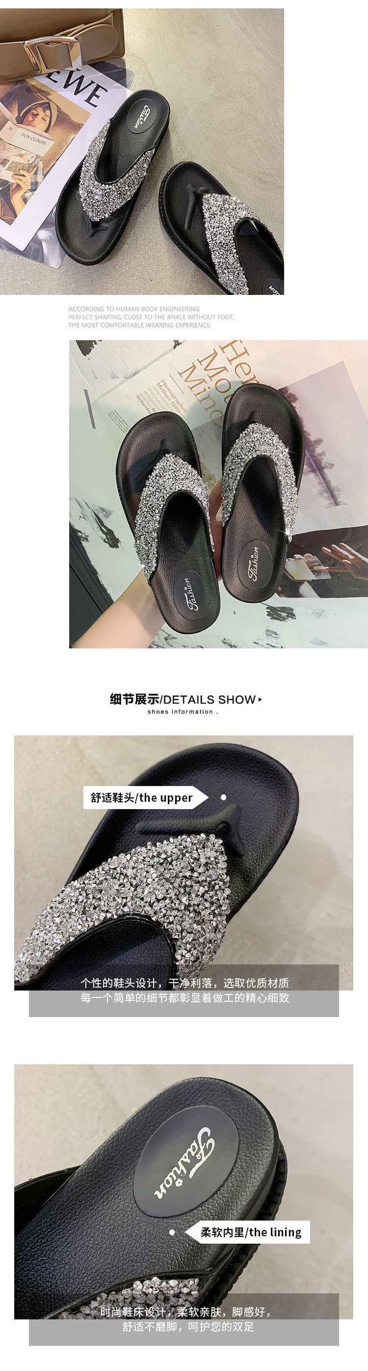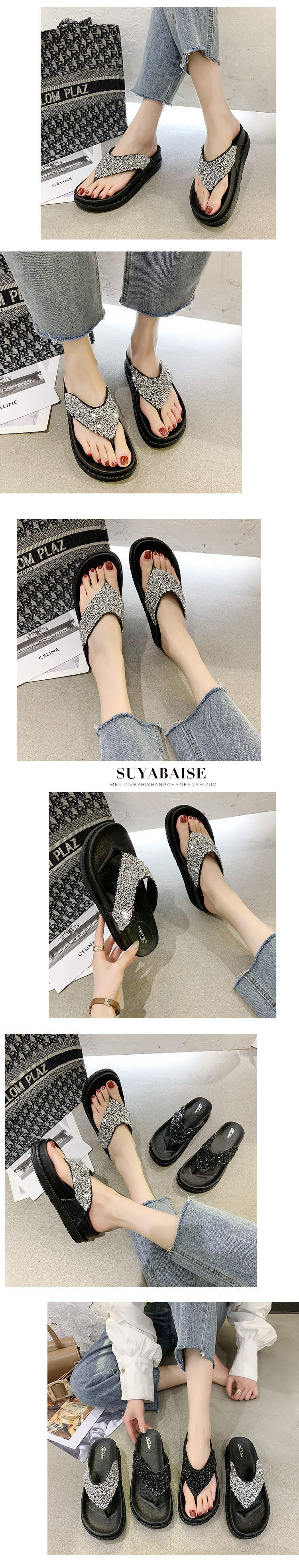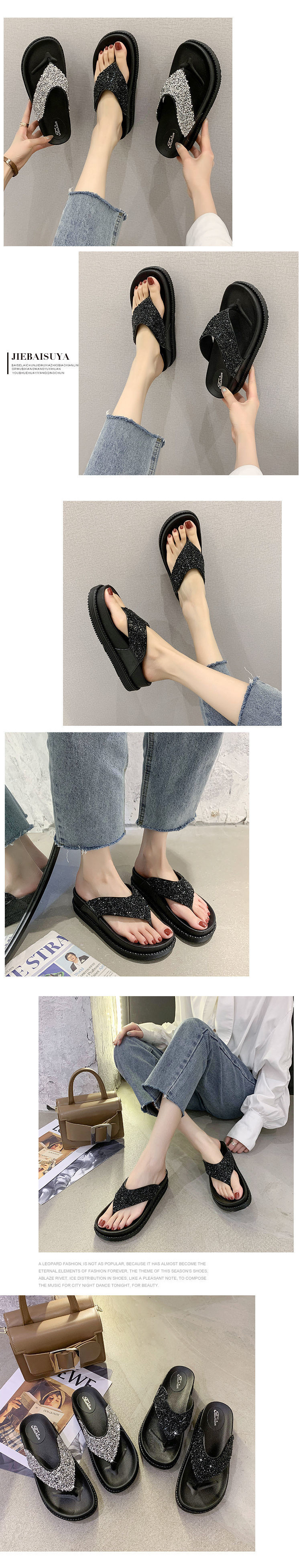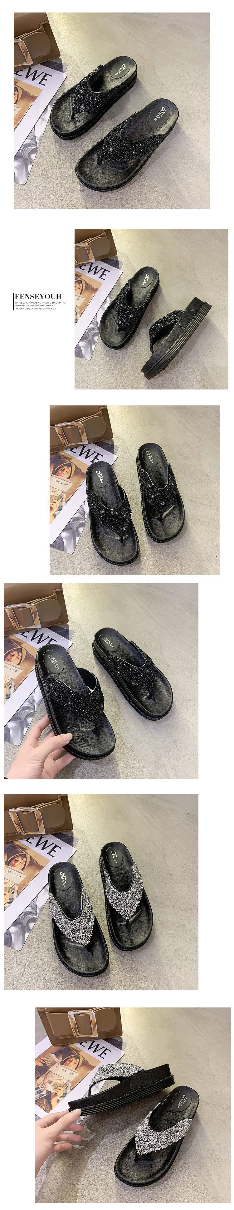 여성을위한 라인 석 플립 플롭 여름 패션 겉옷 두꺼운 밑창 플립 플롭 인터넷 연예인 슬리퍼 2021 새로운 비치 웨지 샌들