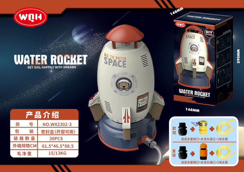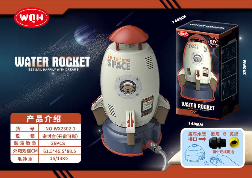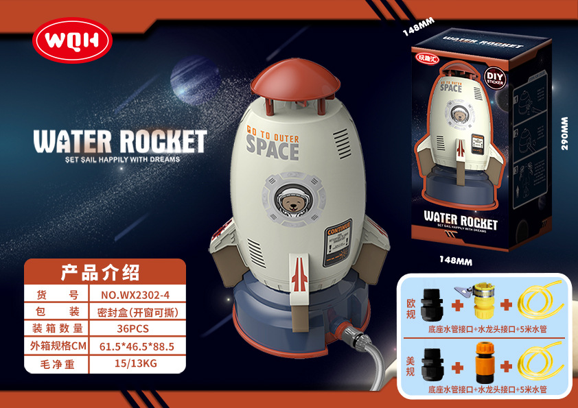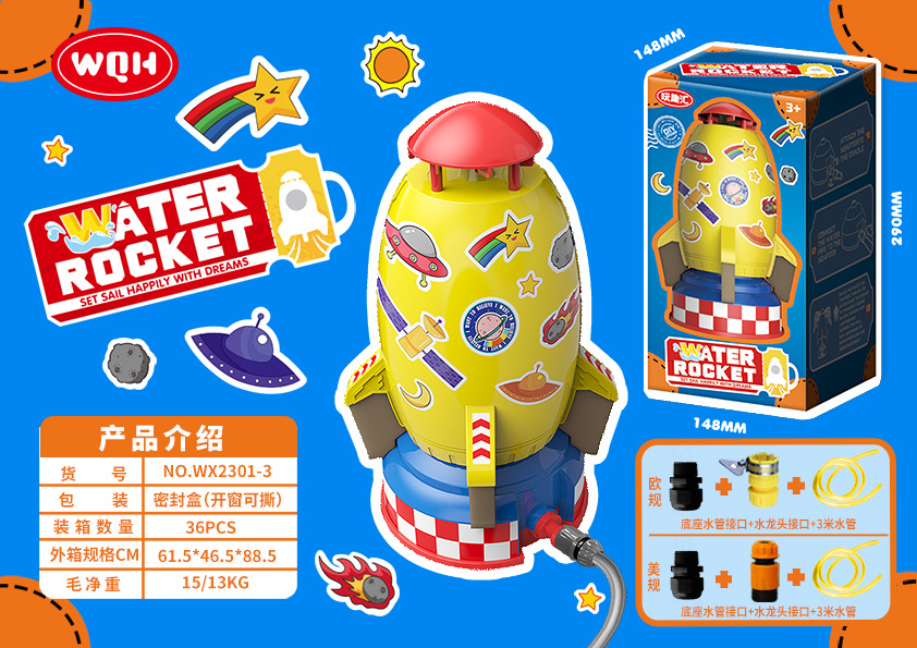 국경을 넘는 새로운 수압 상승 공간 로켓 스프링클러 어린이 회전 비행 야외 물 스프링클러 물 장난감