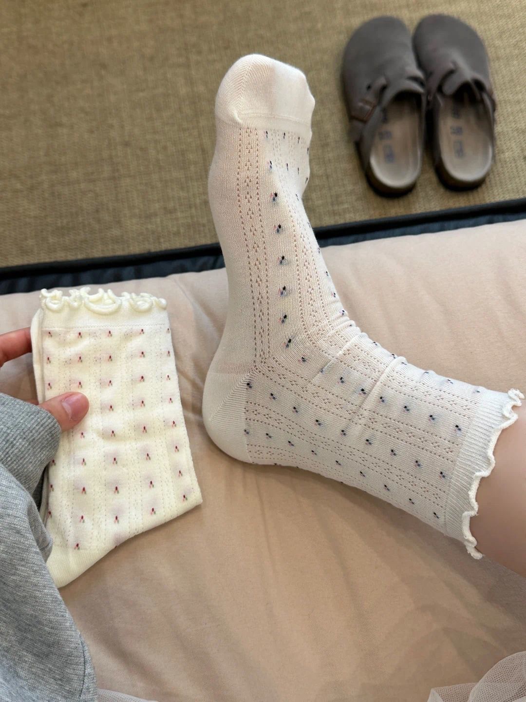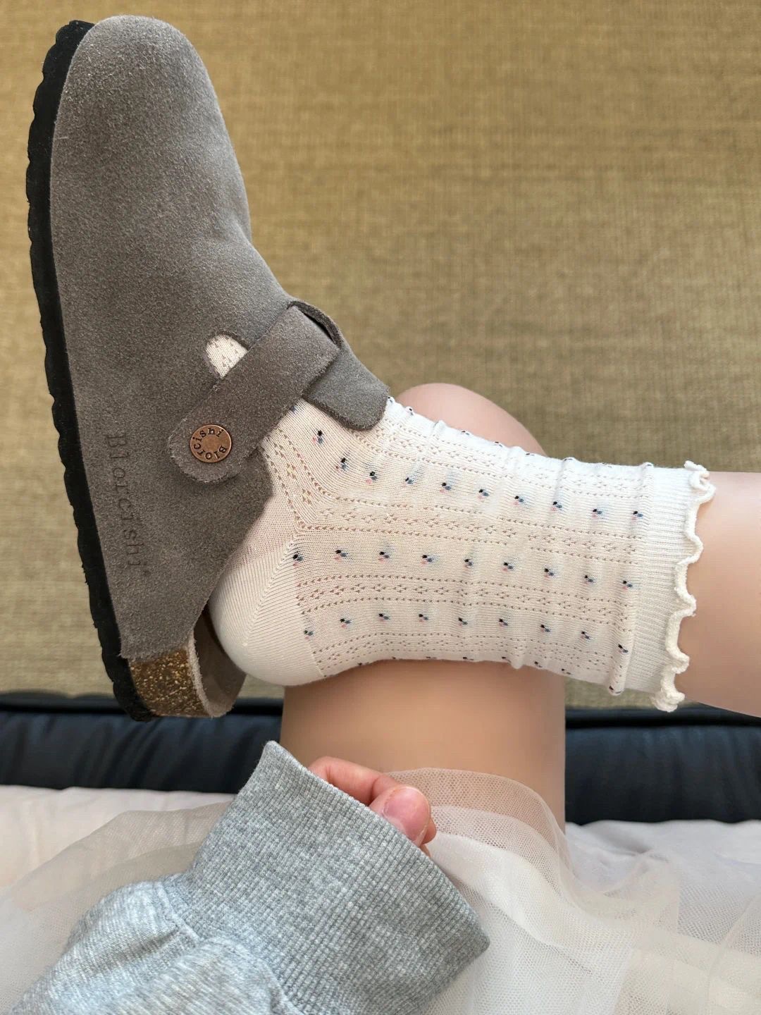 봄과 여름 귀여운 바람 양말 만화 체리 개 양말 파란색 양말 짧은 양말 색상 일치하는 줄무늬 문자 얕은 입 보이지 않는 양말
