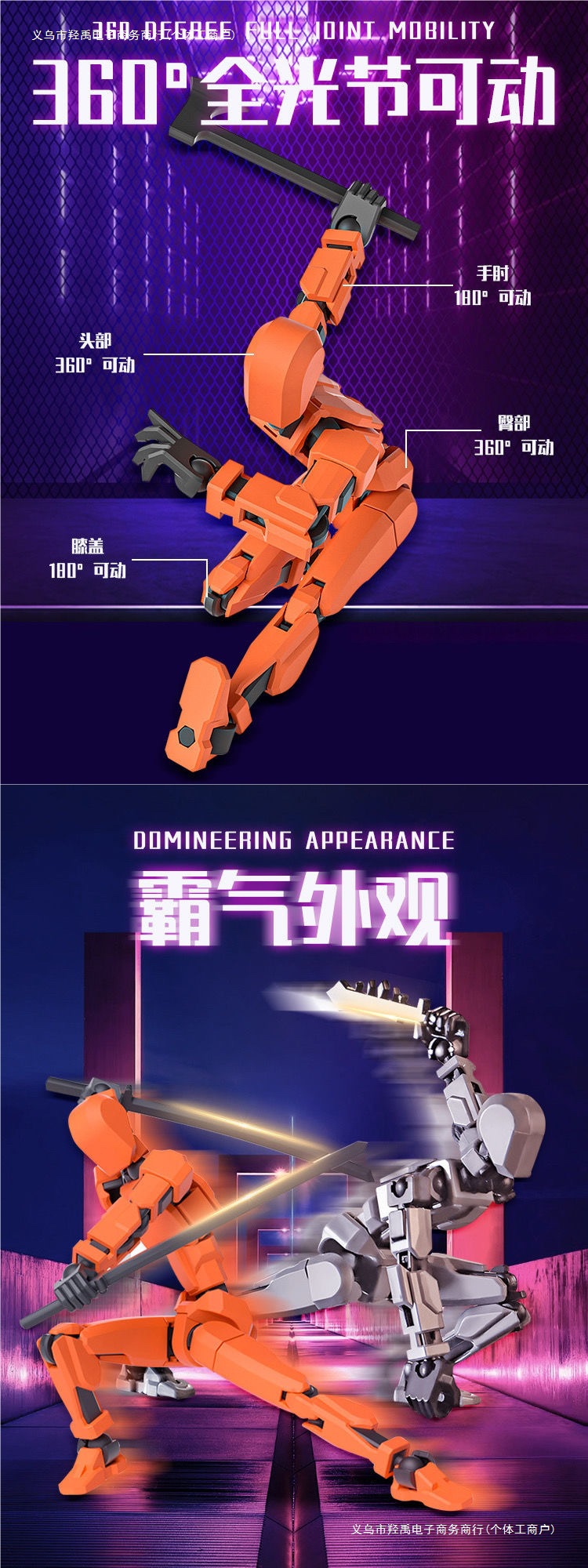 • 2 피규어 세트 - 파란색 + 주황색 [자체 조립 + 설명서 + 무기 8개 및 제스처 6개]