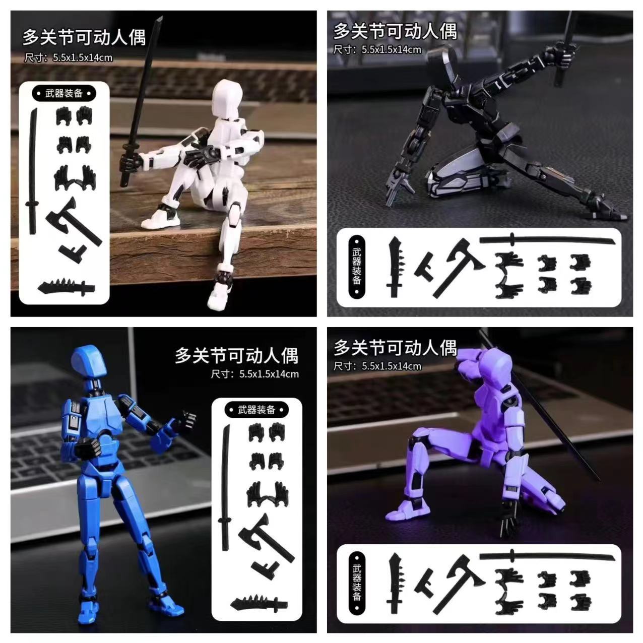 • 인형 4종 조합 - 흰색 + 보라색 + 검정색 + 파란색 [자체 조립 + 설명서 + 무기 12개 및 제스처 9개]