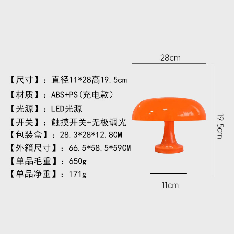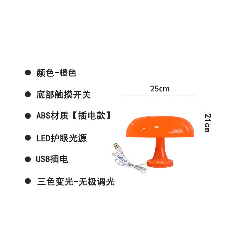 • 주황색 버섯 램프-ABS-USB 플러그인