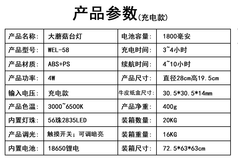 • 흰색 버섯 램프-ABS-USB 플러그인