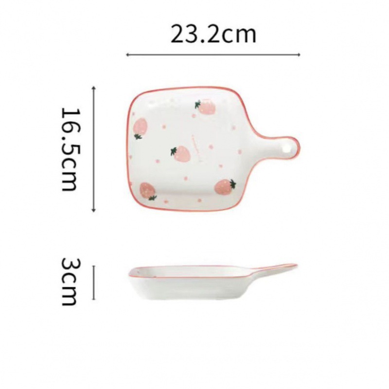 팬 그릇 전자 레인지 북유럽 스타일 팬 핸들 딸기 손으로 그린 핸들 세라믹 식기 베이킹 팬 찐 계란 그릇 없음스토어 가기