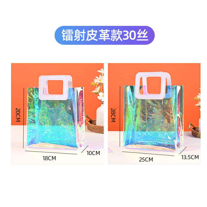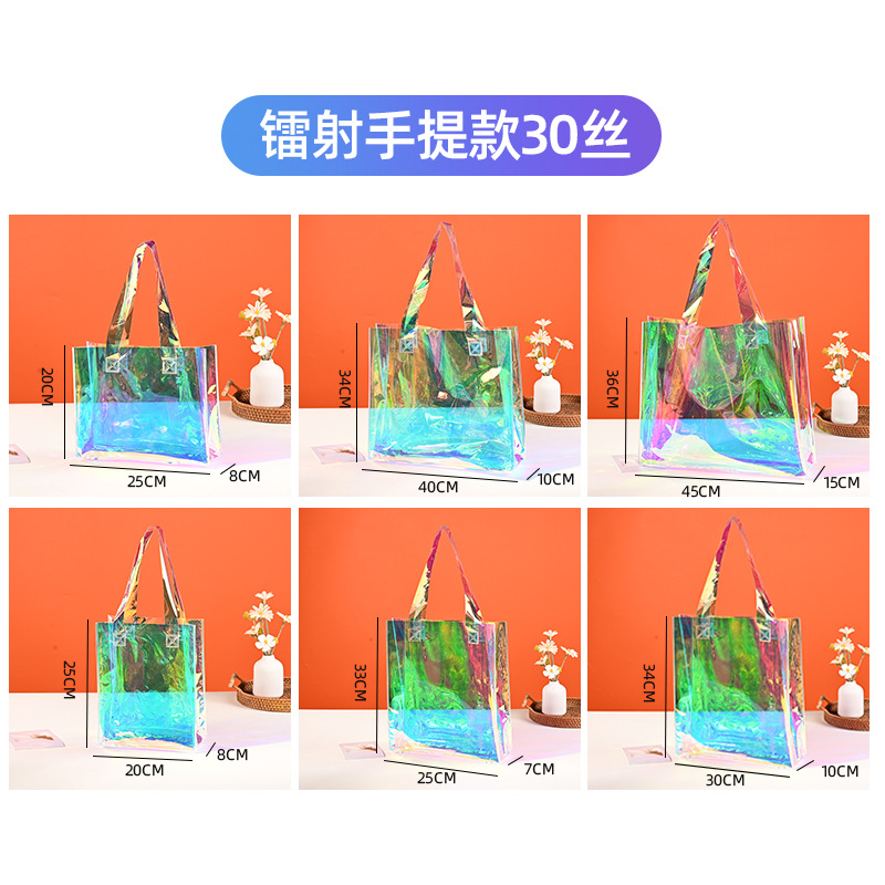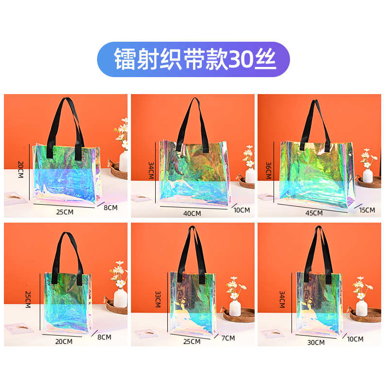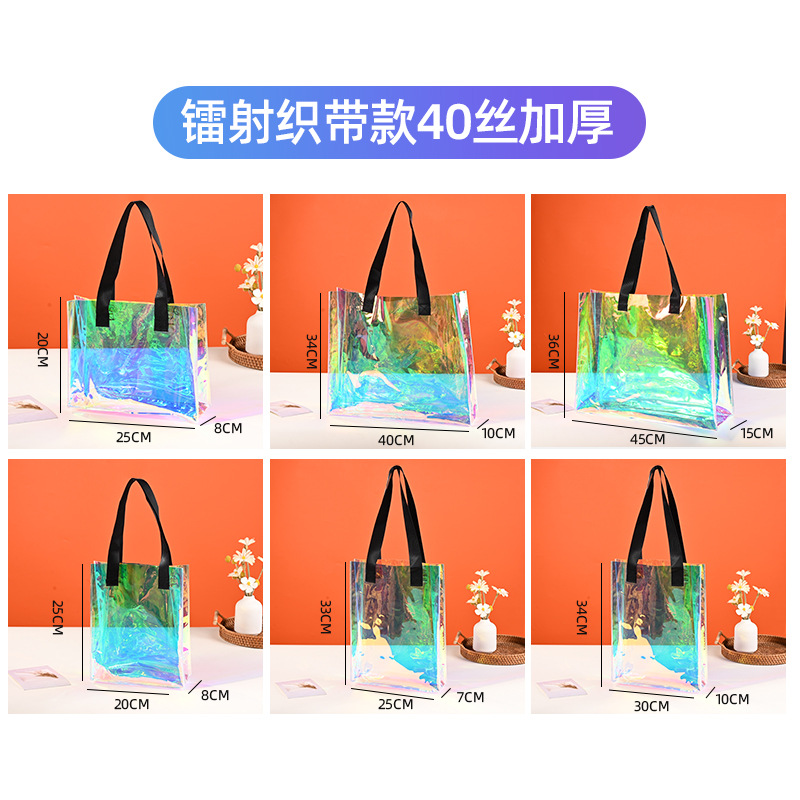 PVC 플라스틱 레이저 핸드백 맞춤 제작 회사 전시회 TPU 쇼핑백 화려한 크로스백 기념품 가방스토어 가기