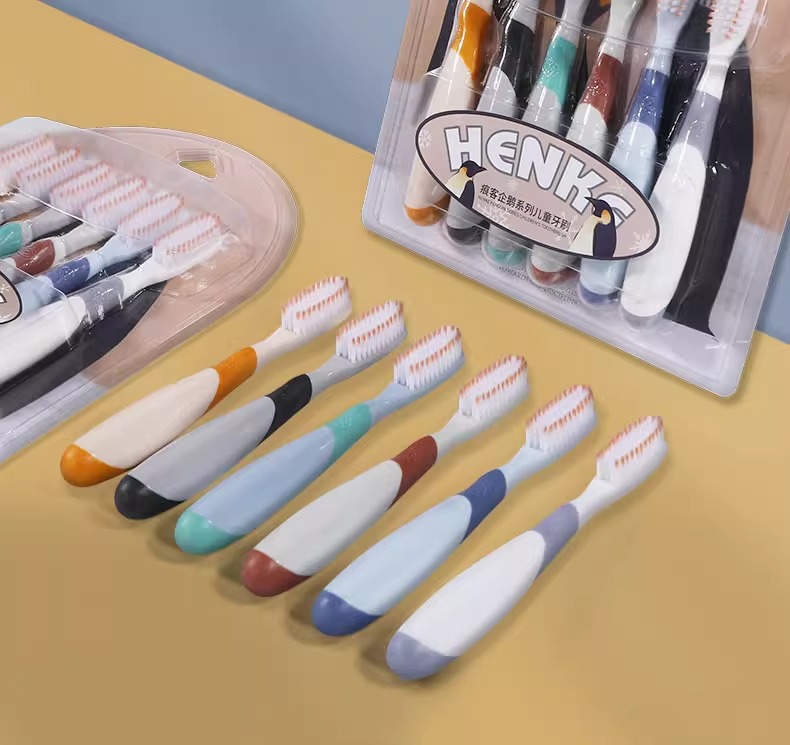 펭귄 긴 머리 큰 머리 부드러운 머리 아이들의 칫솔 6-12 세 효율적인 깨끗한 미끄럼 방지 여행 성인 칫솔