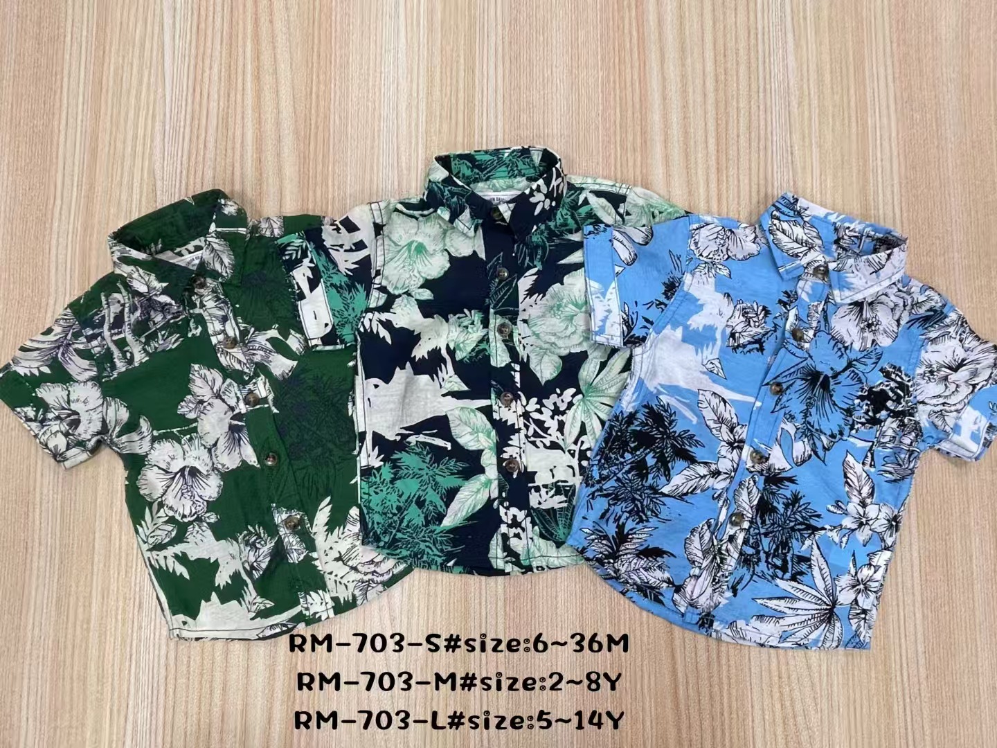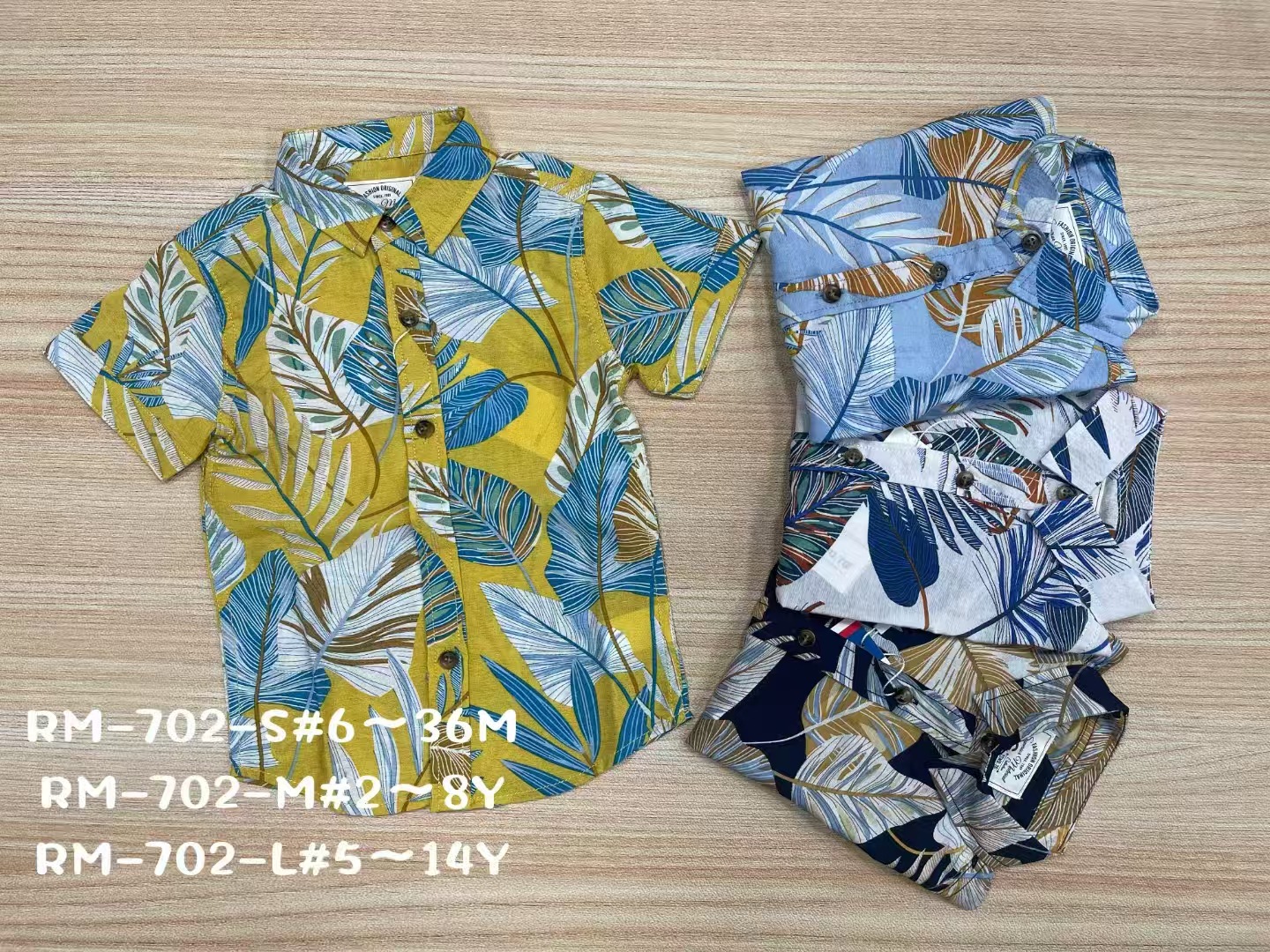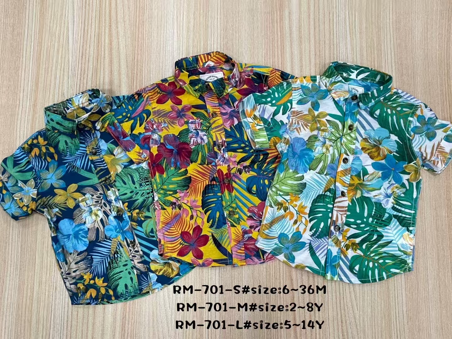 대외 무역 꽃무늬 셔츠 어린이 신작 반팔 셔츠 소년 여름 면 셔츠 전체 인쇄 6M-36M 옷깃 702S