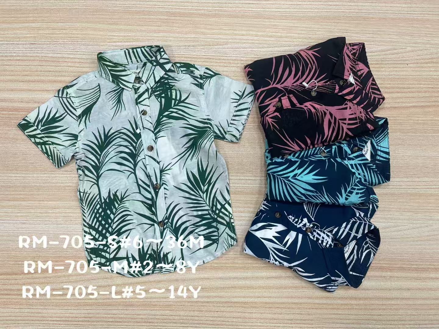 대외 무역 꽃무늬 셔츠 어린이 신작 반팔 셔츠 소년 여름 면 셔츠 전체 인쇄 6M-36M 옷깃 702S스토어 가기