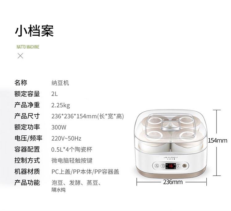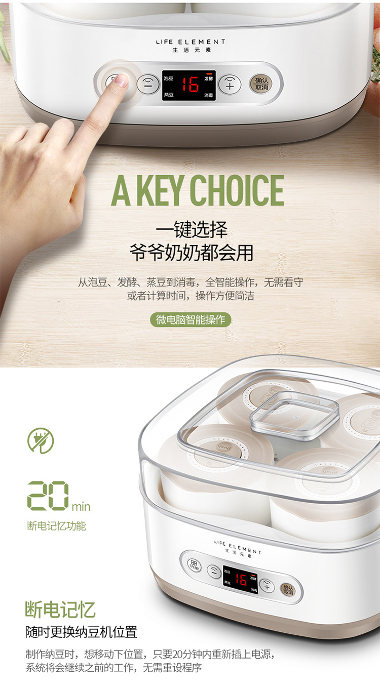 라이프 엘리먼트 낫토 기계 S12 전문 완전 자동 소형 1인 가정용 요구르트 기계 발효기 쌀 술 제조기스토어 가기