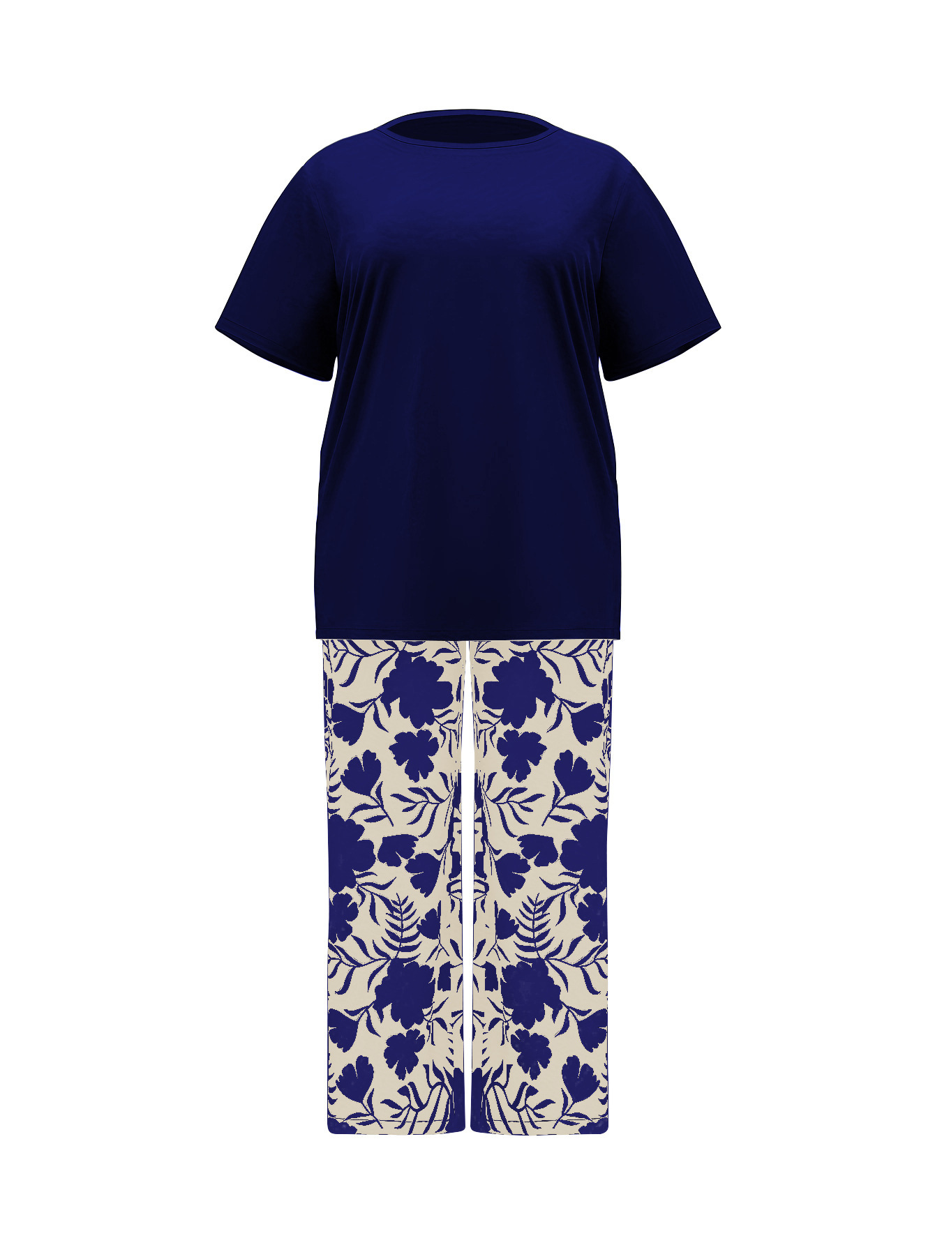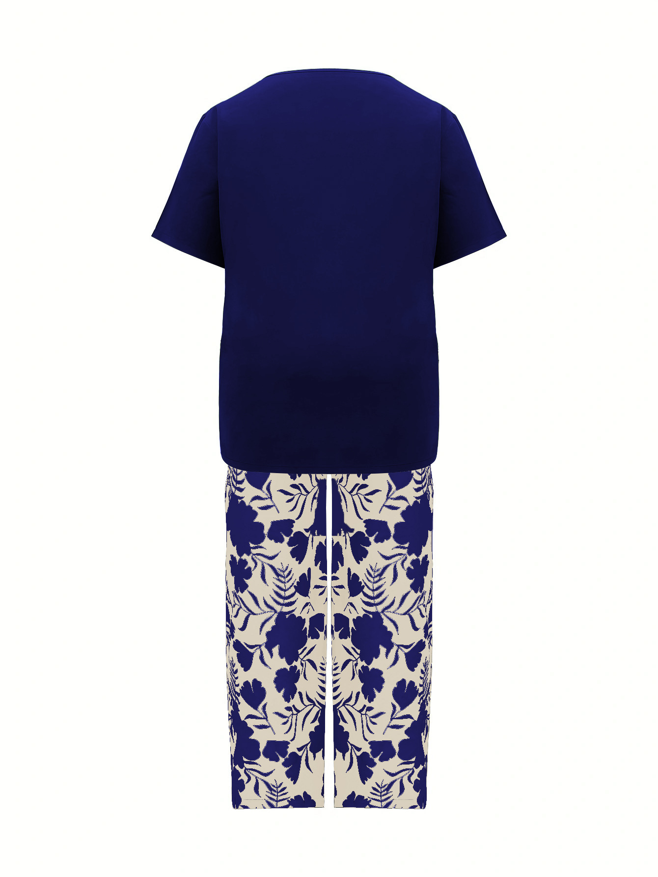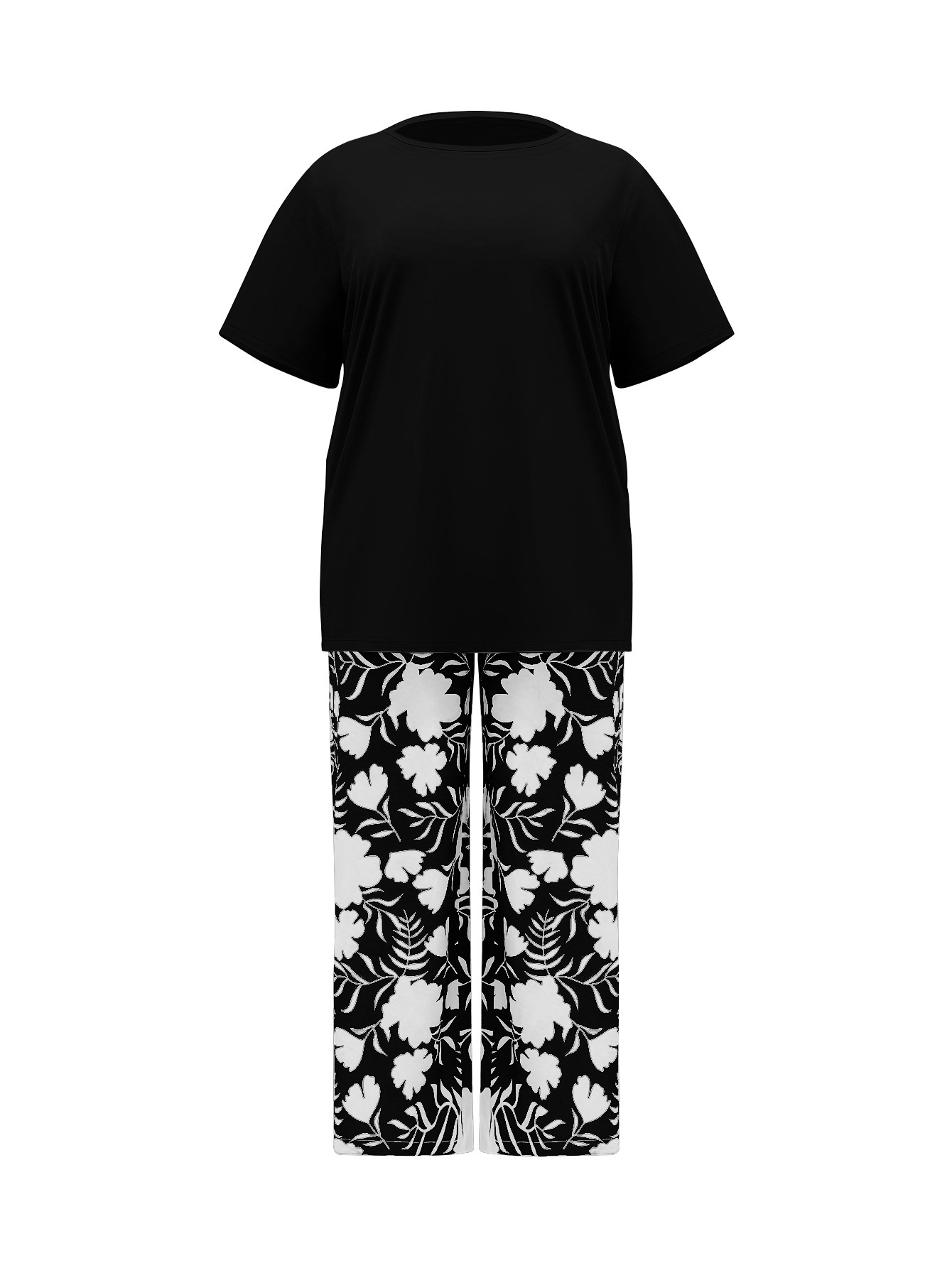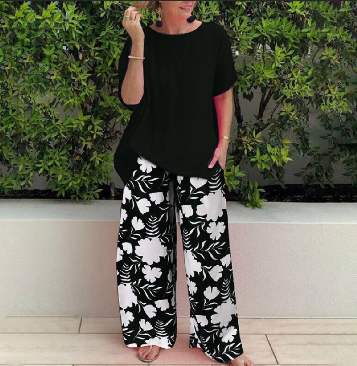 2025 국경 아마존 AliExpress 여성의 여름 패션 느슨한 바지 캐주얼 세트 두 조각 인쇄