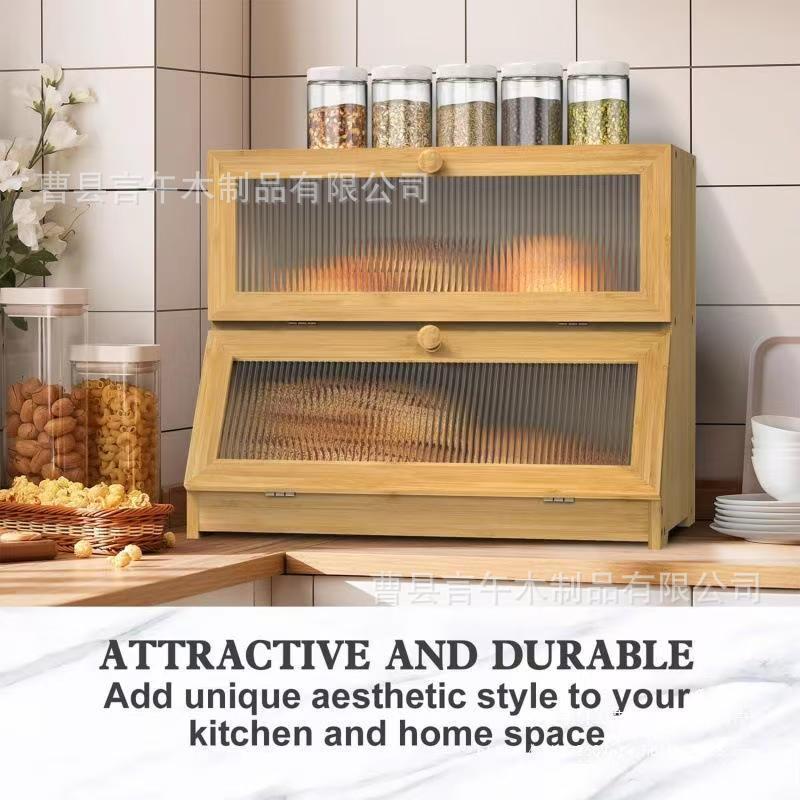 주방용 맞춤형 대나무 빵 보관 상자, 이중층 보관 원목 방진 상자, 주방 찬장 보관함