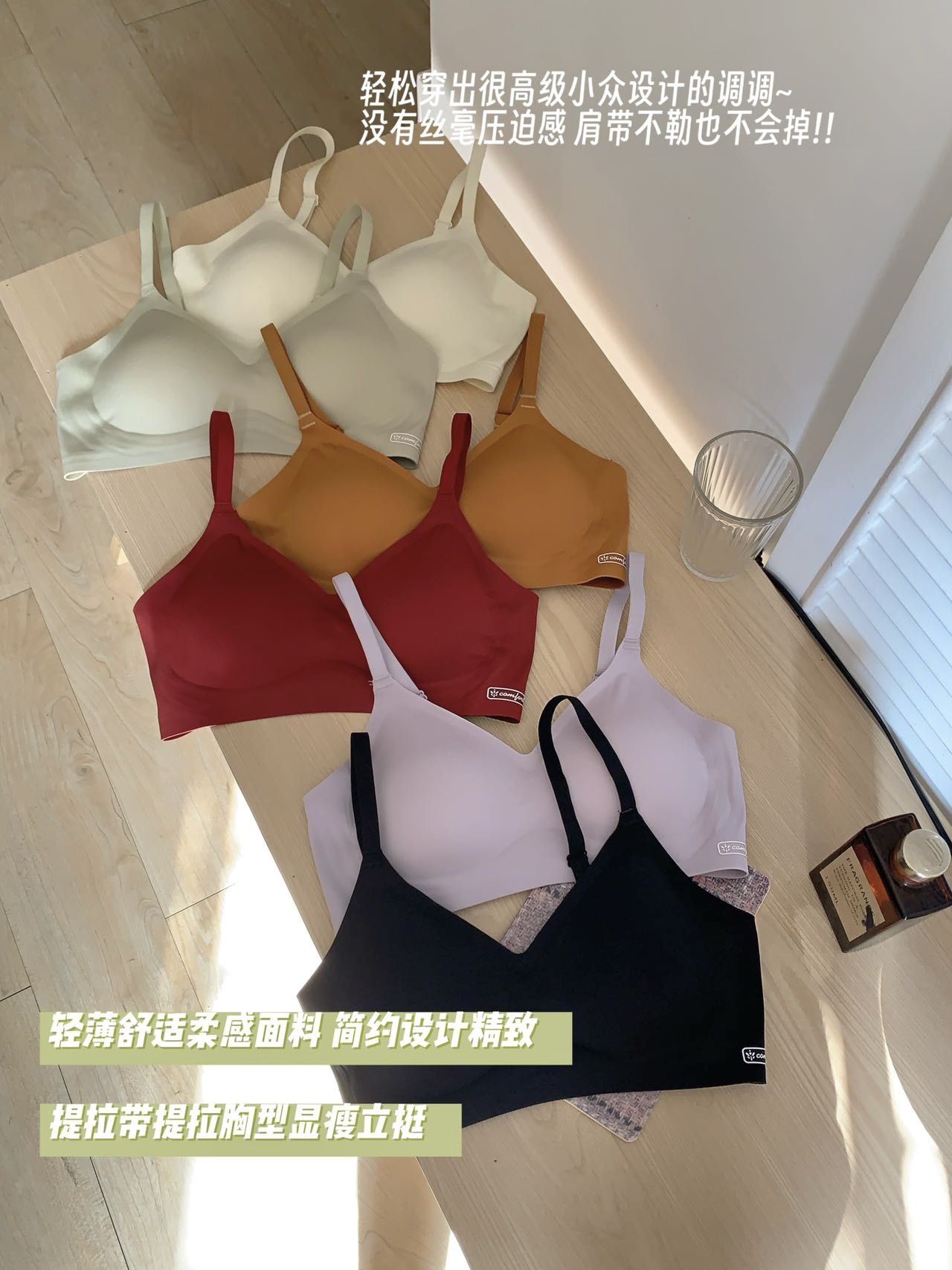 큰 가슴과 작은 가슴을 가진 여성을 위한 심리스 속옷, 푸쉬업 3D 젤리 스트립 고정 컵, 작은 가슴을 조절하는 얇은 스포츠 브라