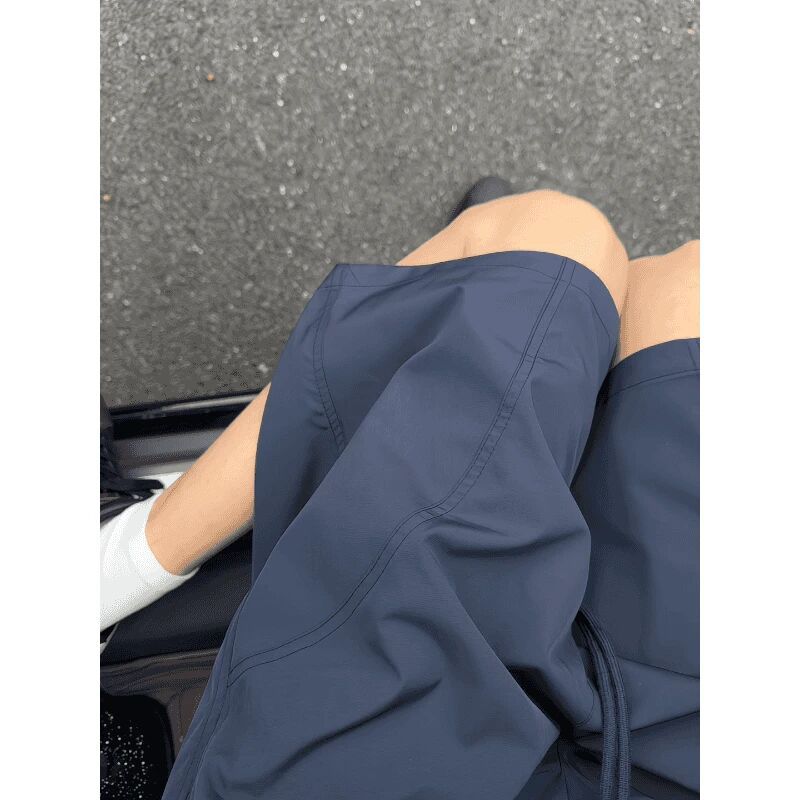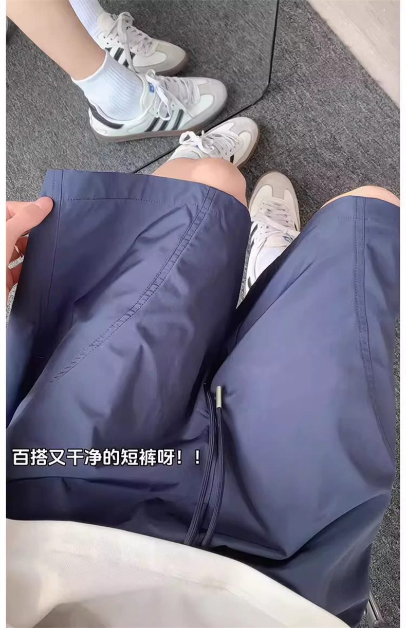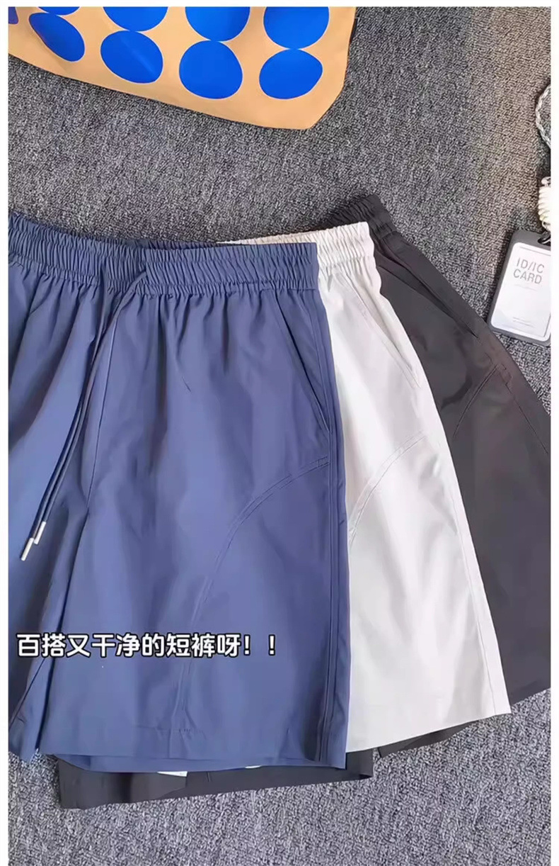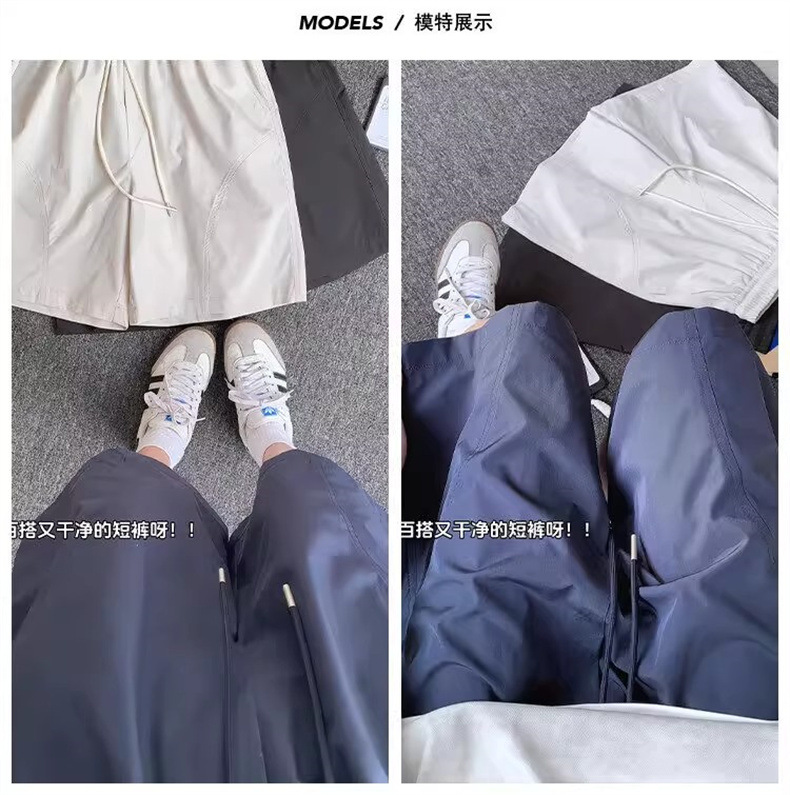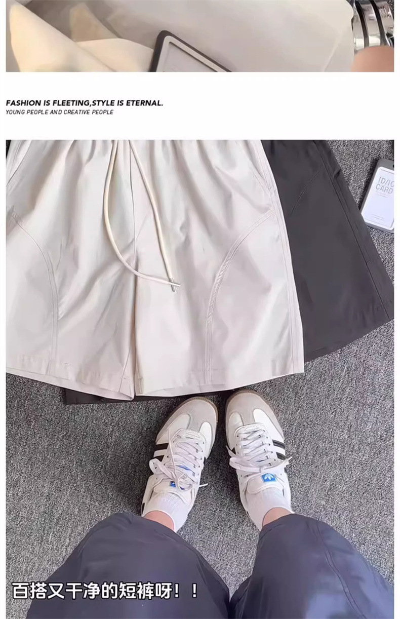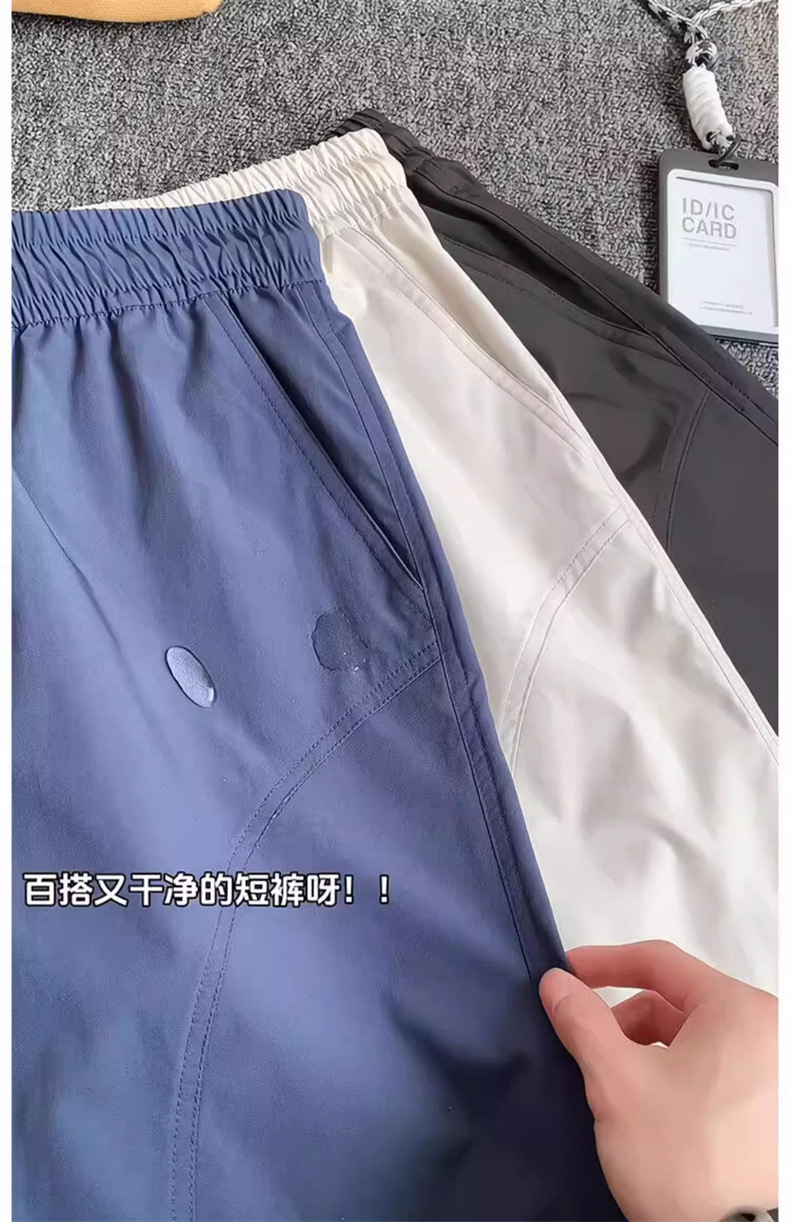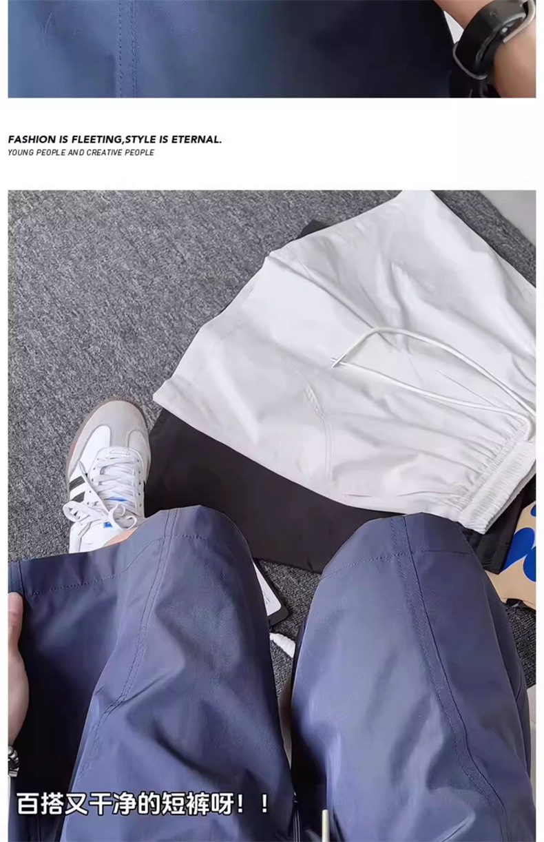 아메리칸 스타일 오프화이트 칼단각 캐주얼 반바지 남성 여름 아이스 실크 속건성 충전 바지 무릎 위 4부 중간 바지