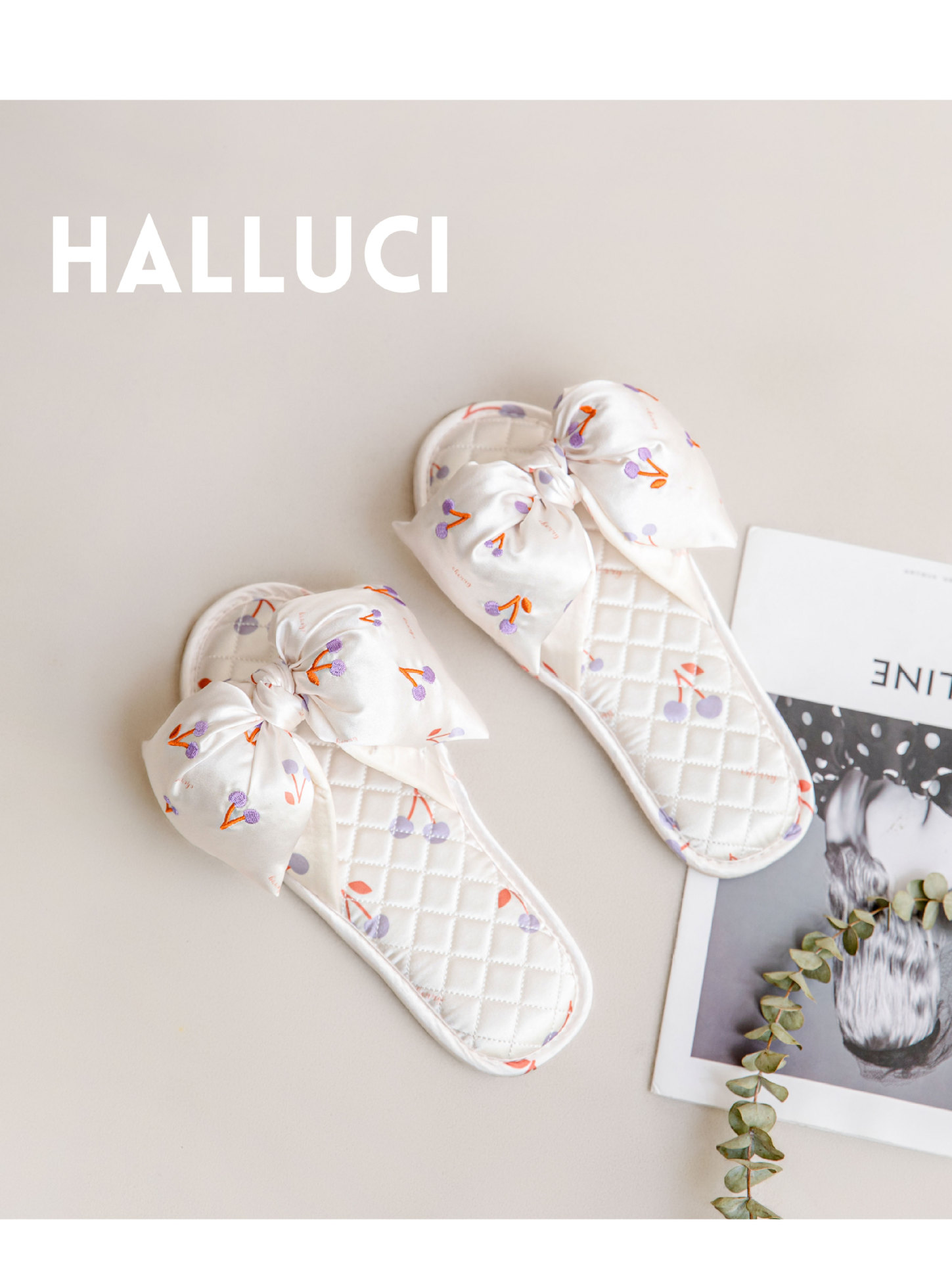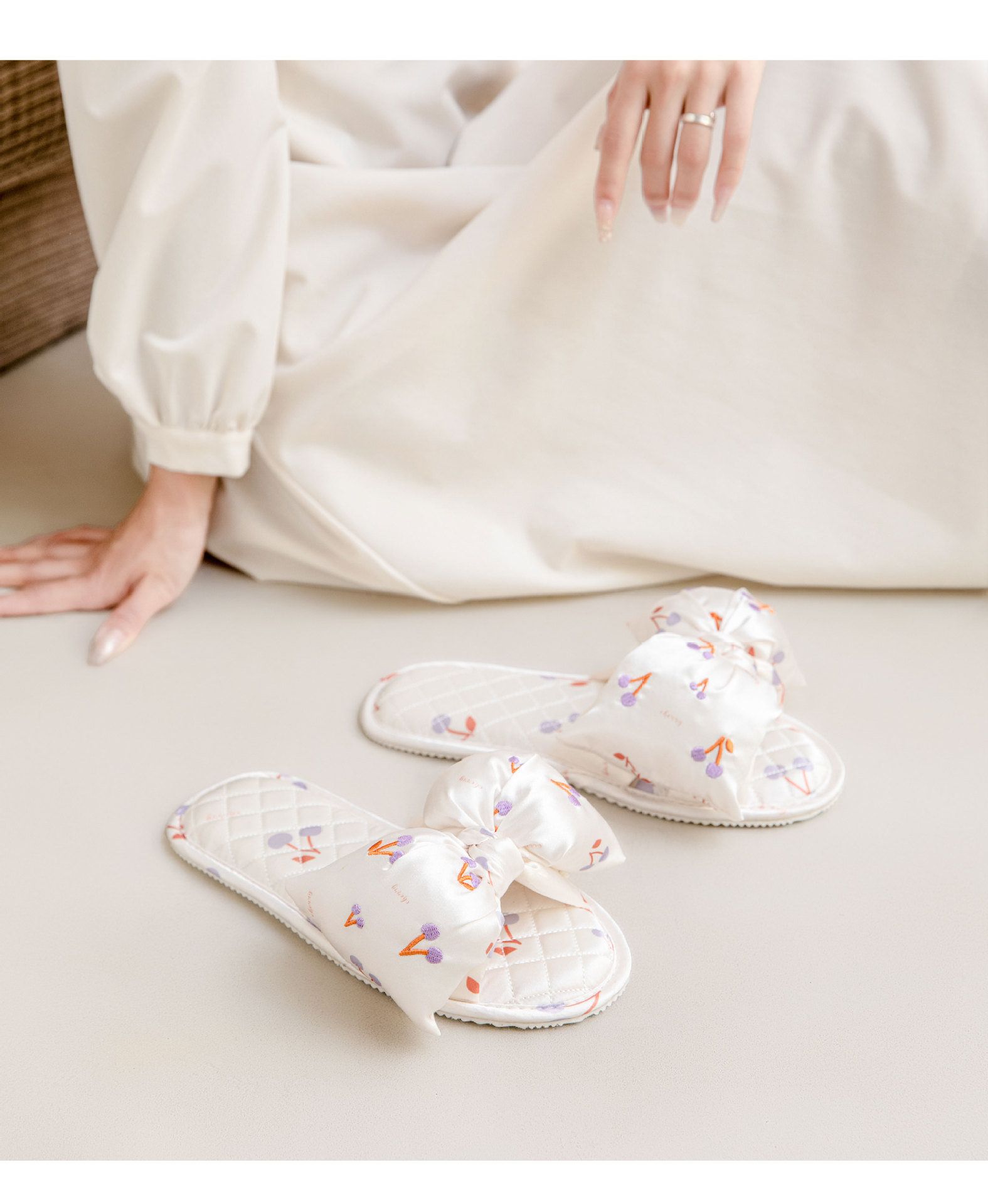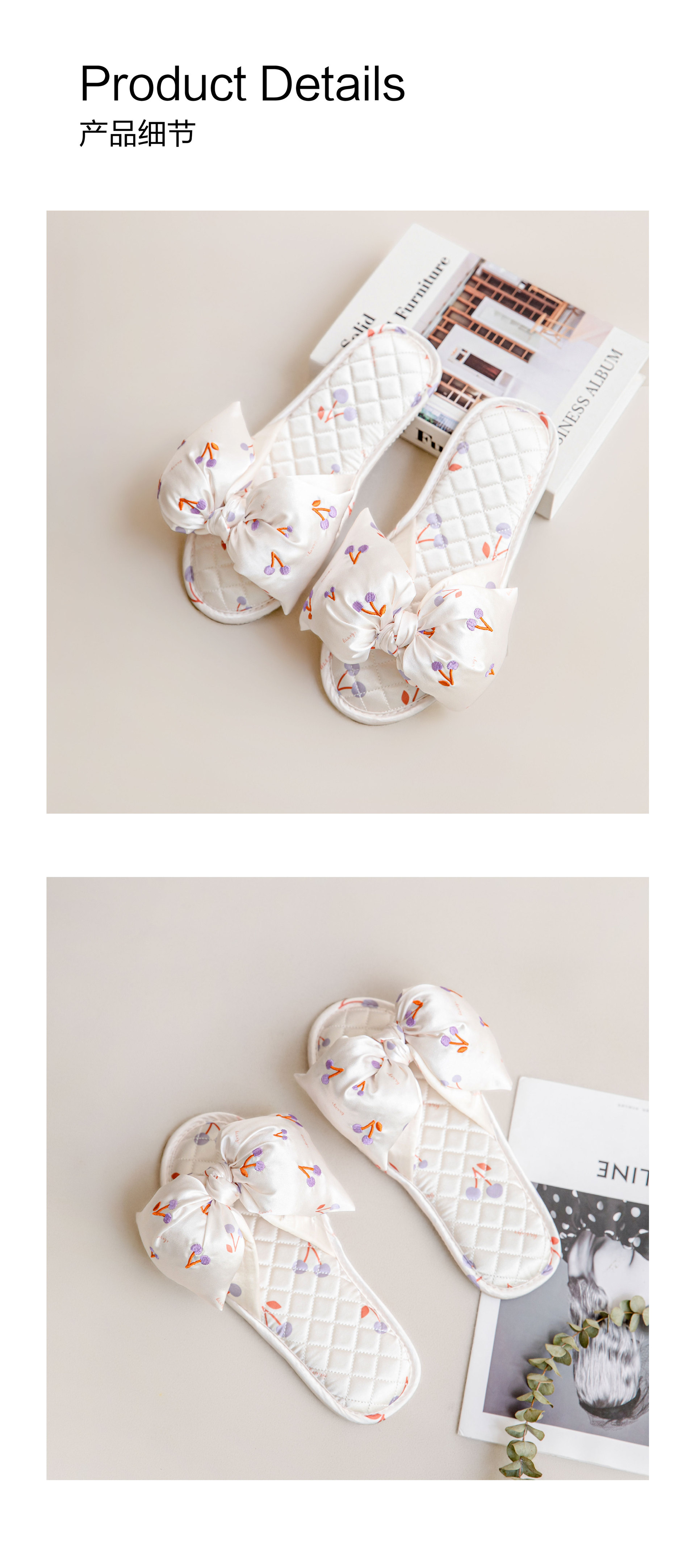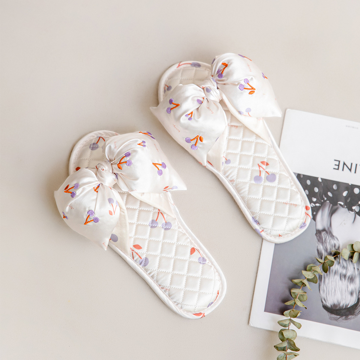 2025 새로운 봄과 여름 홈 슬리퍼 절묘한 달콤한 전기 자수 체리 큰 활 여성 홈 슬리퍼 미끄럼 방지