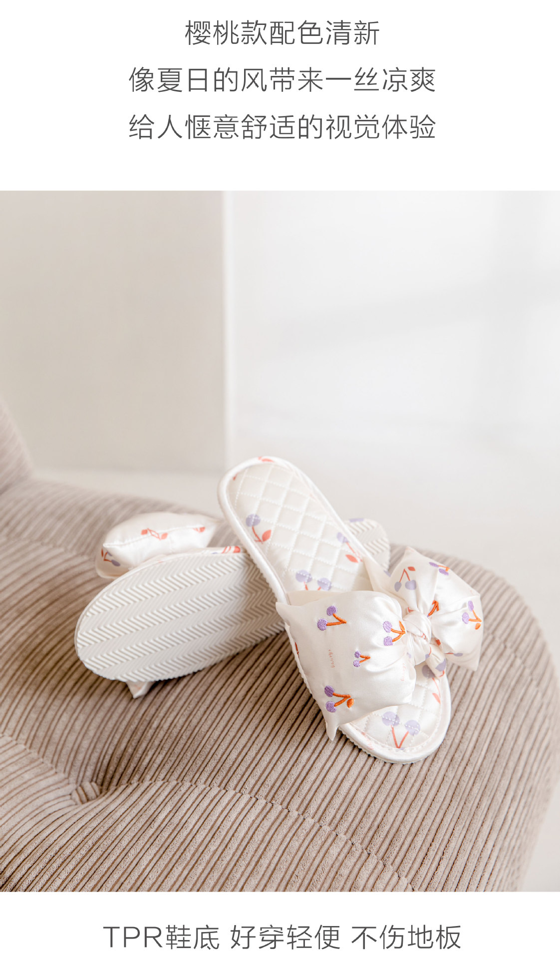 2025 새로운 봄과 여름 홈 슬리퍼 절묘한 달콤한 전기 자수 체리 큰 활 여성 홈 슬리퍼 미끄럼 방지스토어 가기