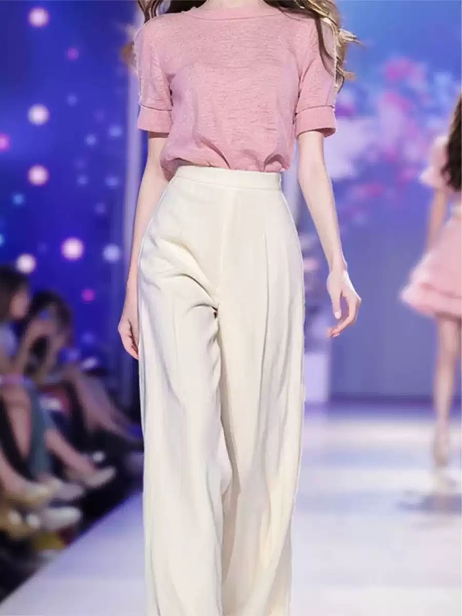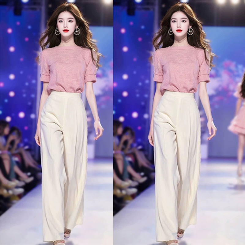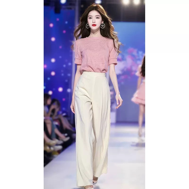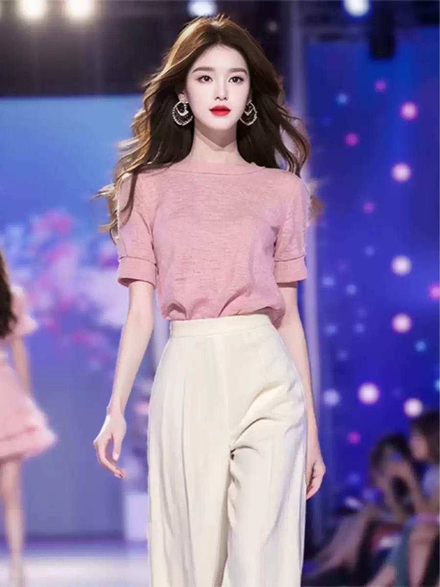 여름 여성의 유행 패션 서양 스타일 높은 차가운 여신 배 모양 그림 슈퍼 좋은 핑크 최고 캐주얼 바지 세트스토어 가기