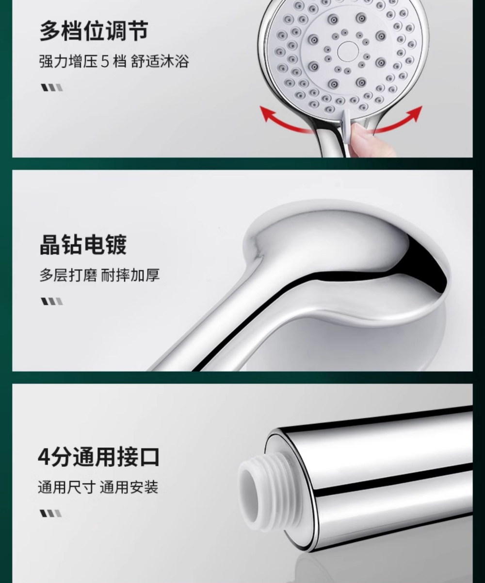 다기능 5 단 샤워 헤드 큰 물 출력 거친 구멍 샤워 헤드 비 단일 헤드 샤워 스프레이