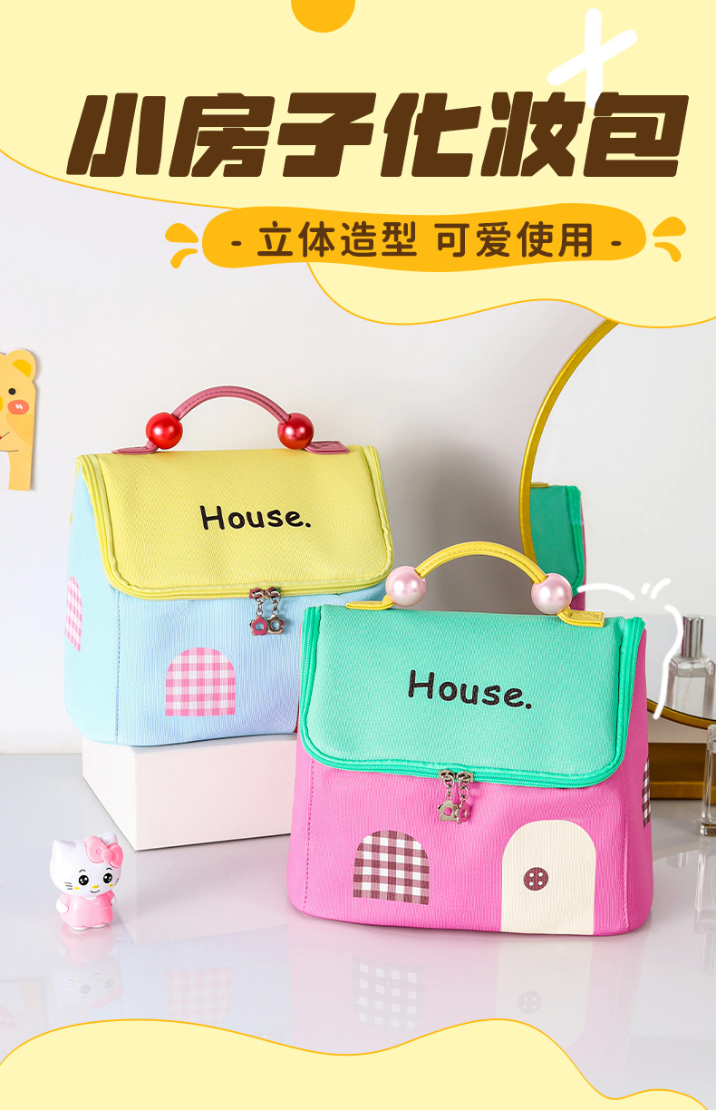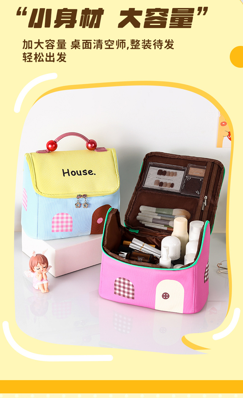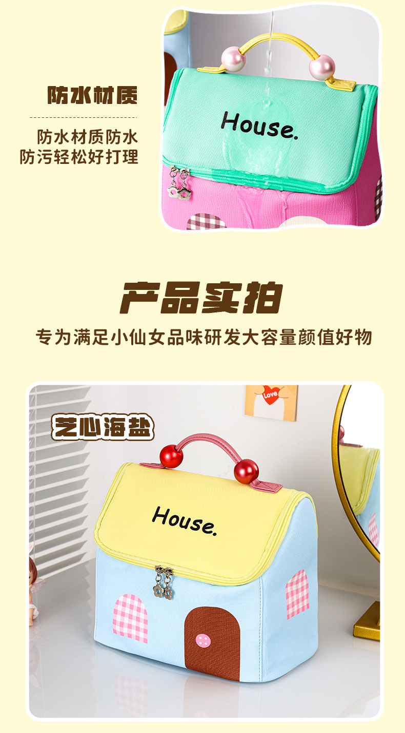 고급스러운 휴대용 화장품 가방, 귀여운 세면도구 가방, 화장품 수납 가방, 인기 있는 작은 집 여행용 수납 가방스토어 가기