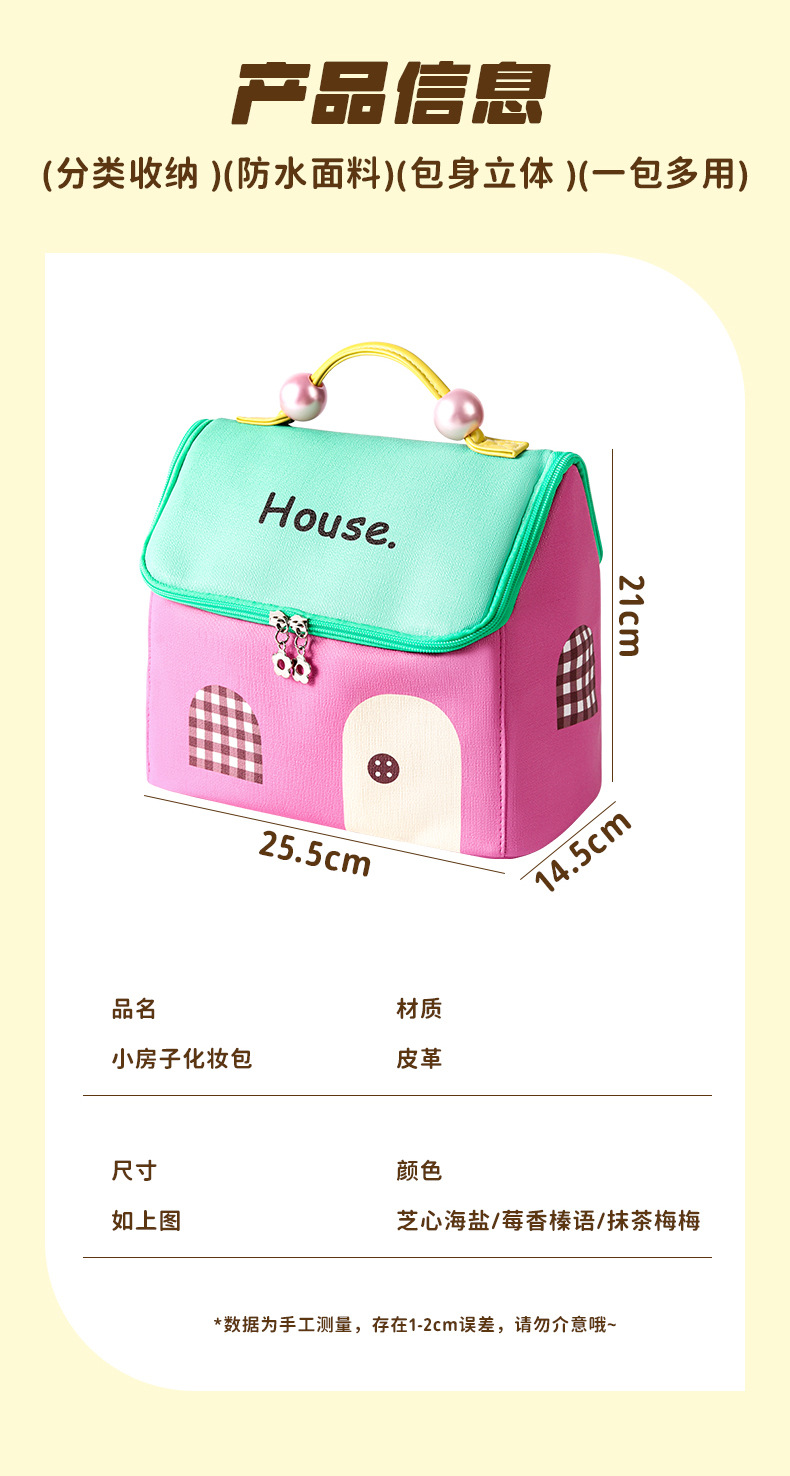 고급스러운 휴대용 화장품 가방, 귀여운 세면도구 가방, 화장품 수납 가방, 인기 있는 작은 집 여행용 수납 가방