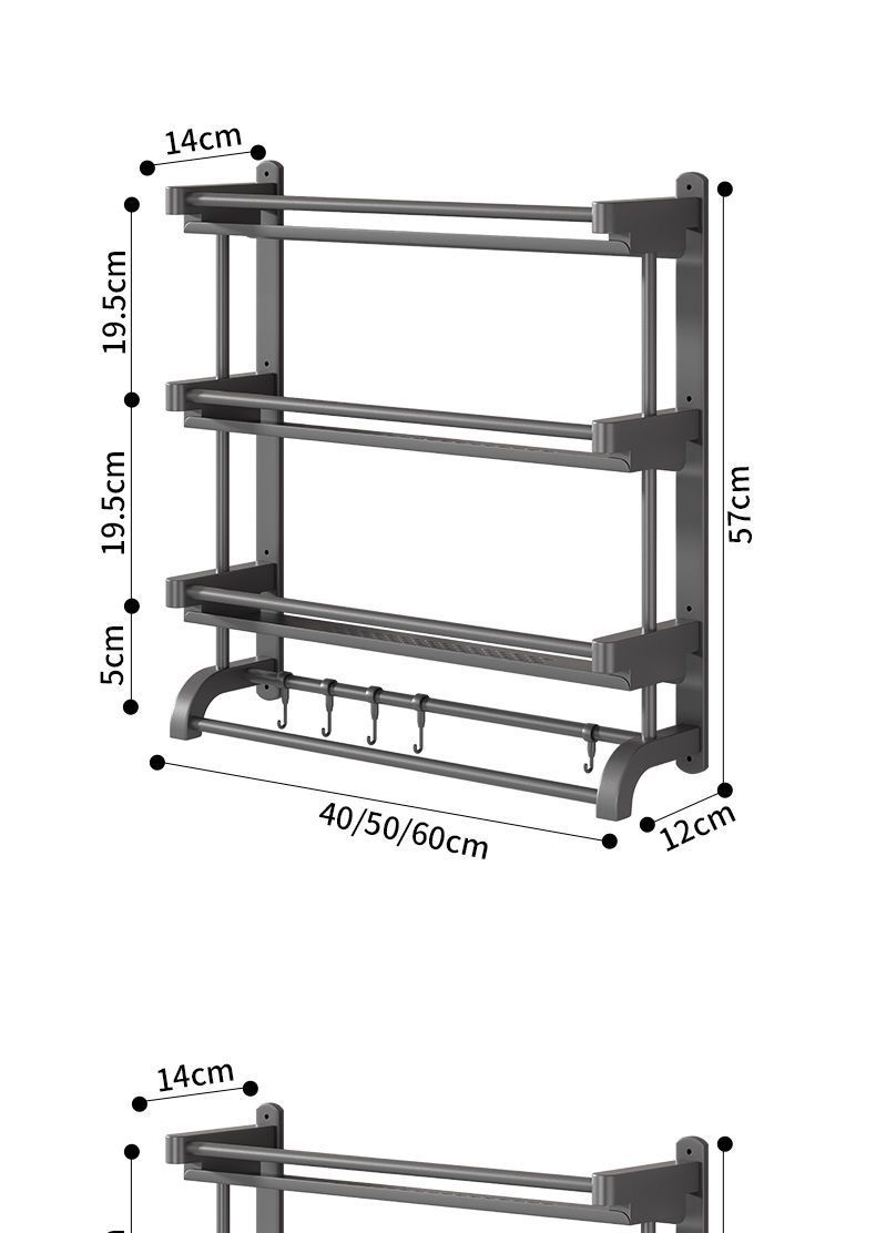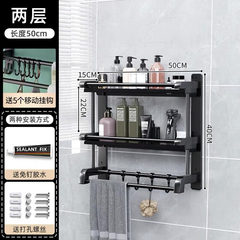 • 설치용 구멍을 뚫을 필요가 없습니다 - 검정색 보관 랙 - 50cm 더블 레이어/후크 5개 포함