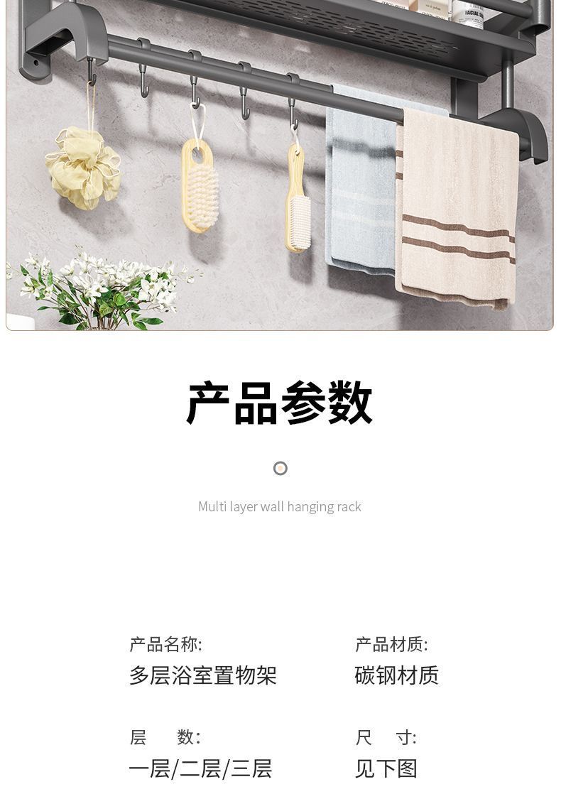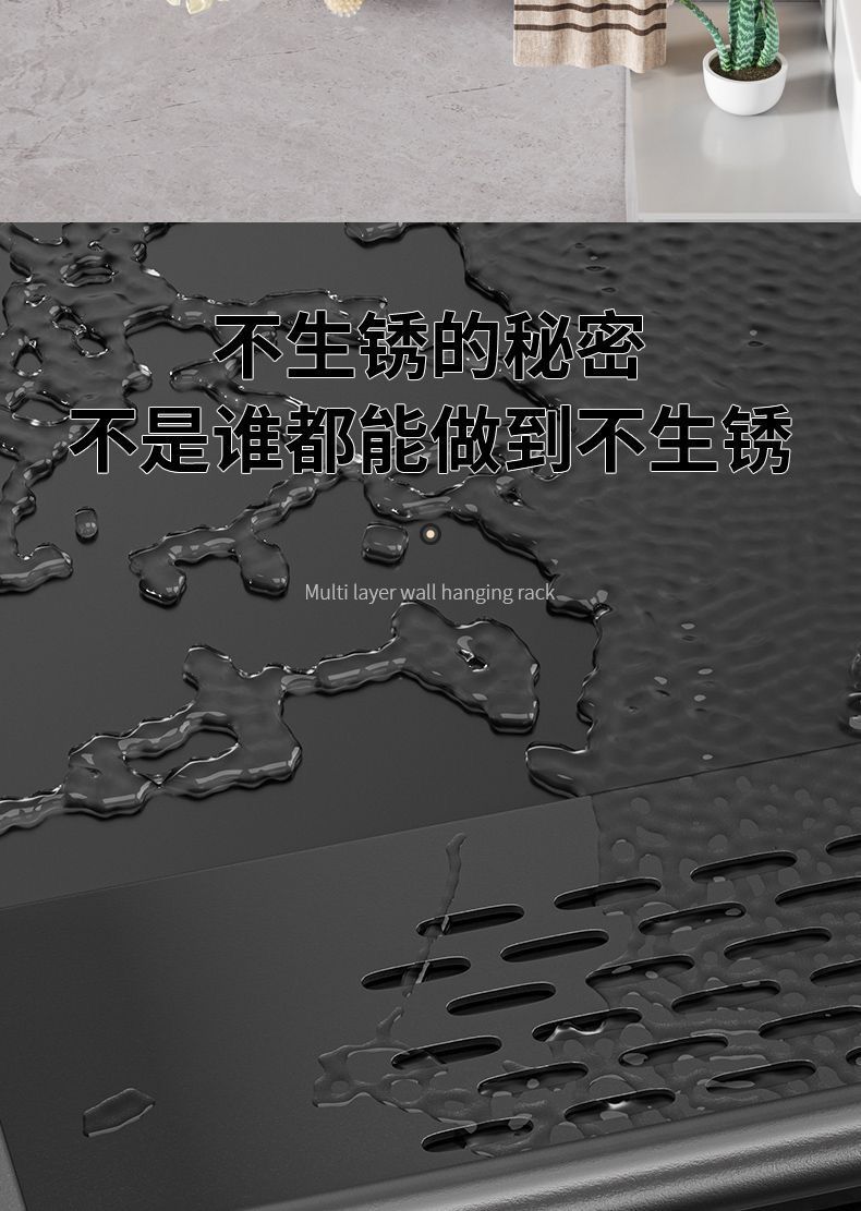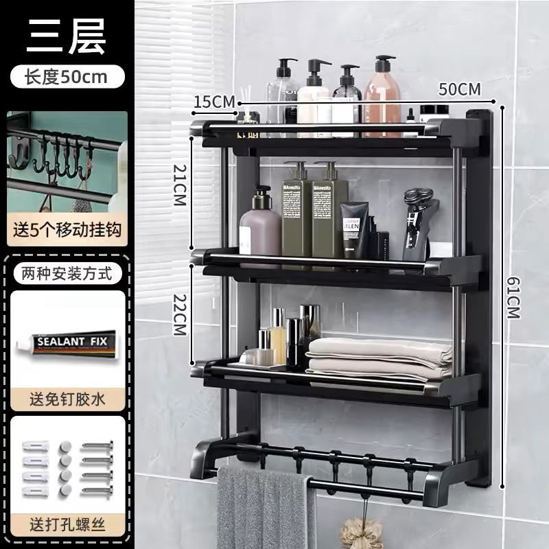 • 설치를 위한 구멍을 뚫을 필요가 없습니다 - 검정색 수납 선반 - 50cm 3단/후크 5개 포함