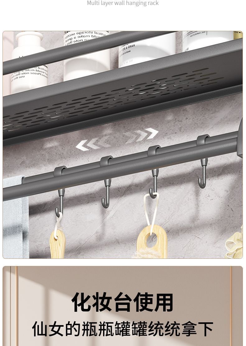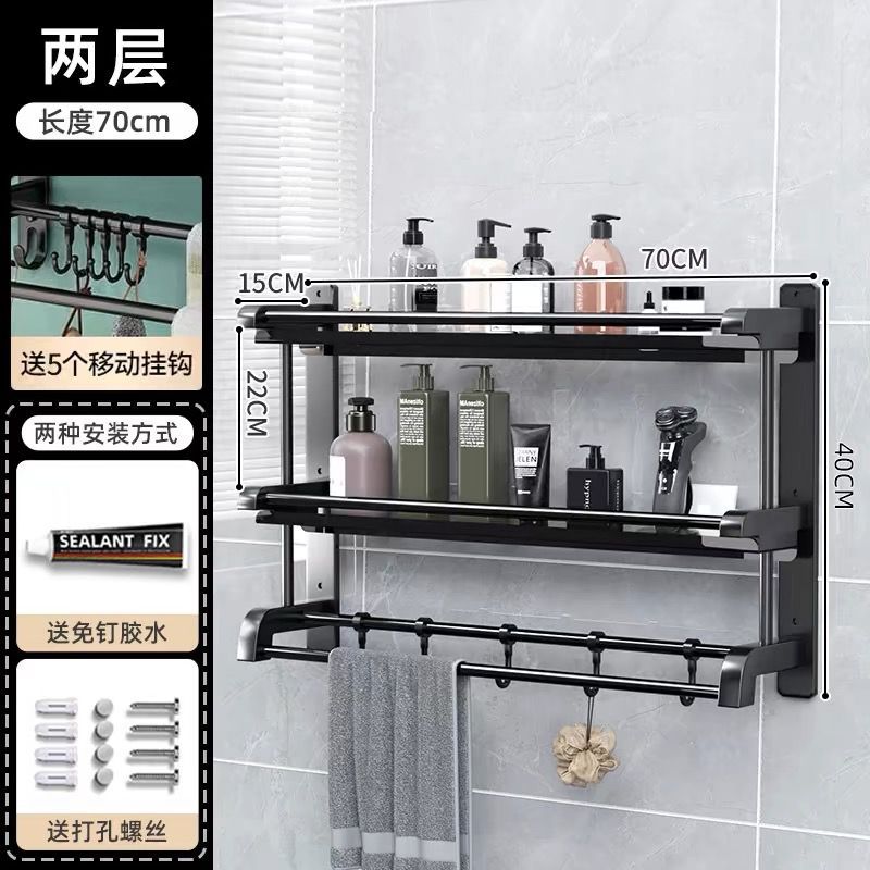 • 설치용 구멍을 뚫을 필요가 없습니다 - 검정색 보관 랙 - 70cm 더블 레이어/후크 5개 포함