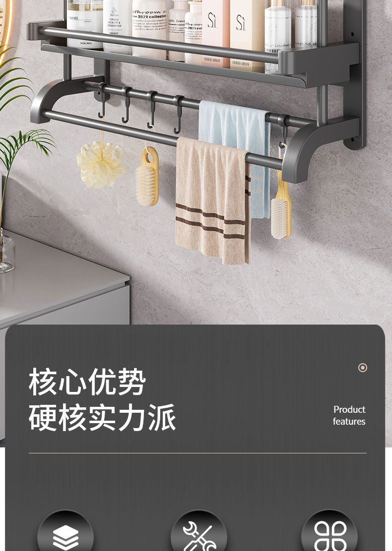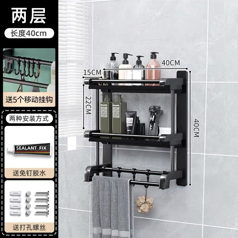 • 설치용 구멍을 뚫을 필요가 없습니다 - 검정색 보관 랙 - 40cm 더블 레이어/후크 5개 포함