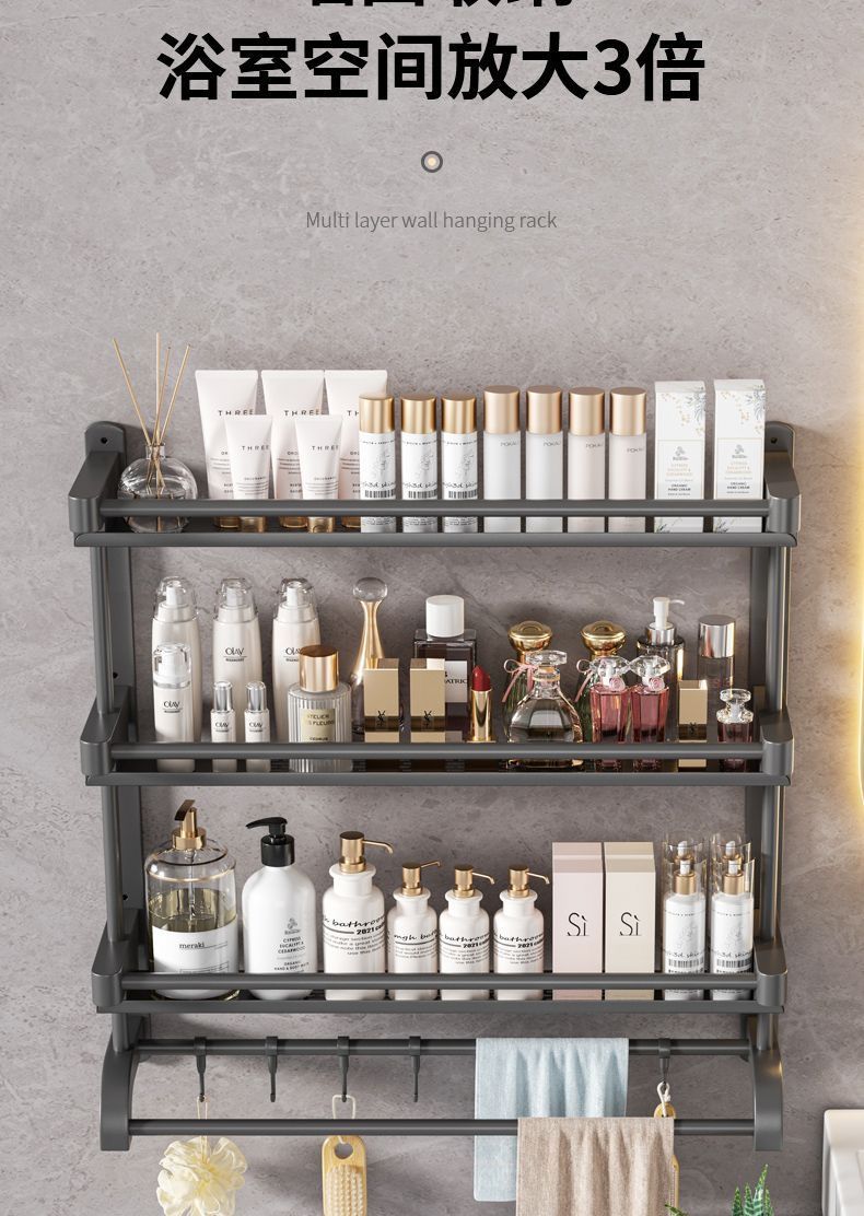 • 설치용 구멍을 뚫을 필요가 없습니다 - 검정색 보관 랙 - 70cm 3단/후크 5개 포함
