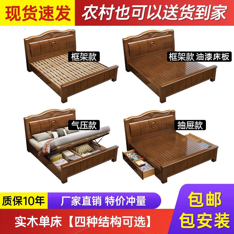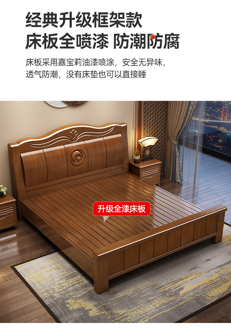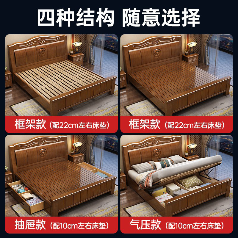 중국 스타일의 단단한 나무 침대 현대 간단한 1.8 m 더블 침대 마스터 침실 전체 단단한 나무 1.5 m 싱글 침대 공장 아울렛 침대스토어 가기
