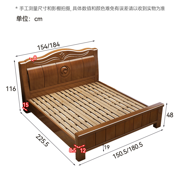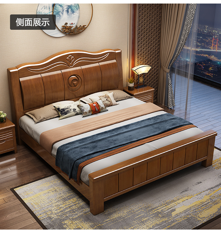 중국 스타일의 단단한 나무 침대 현대 간단한 1.8 m 더블 침대 마스터 침실 전체 단단한 나무 1.5 m 싱글 침대 공장 아울렛 침대