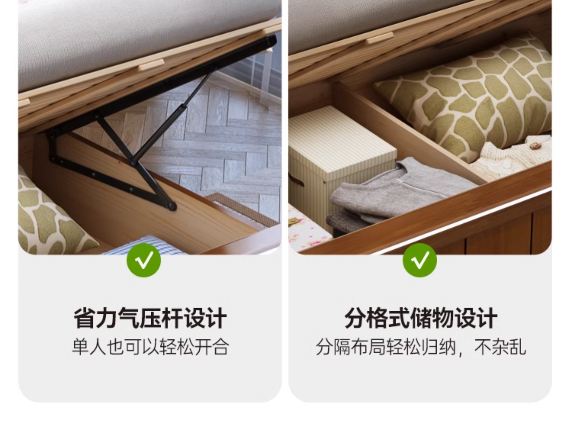 • [두꺼운 모델] 원목 침대 + 스프링 코코넛 야자 매트리스
