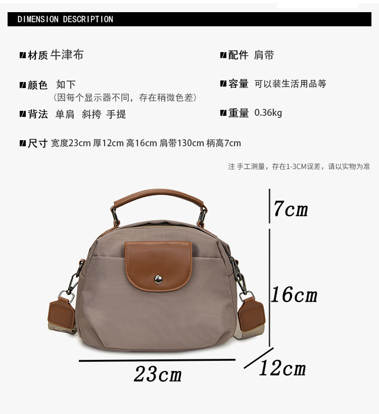 개인화 된 패션 핸드백 방수 나일론 옥스포드 천 어깨 크로스 바디 백 여성 한국어 버전 작은 사각형 가방 틈새 베개 가방