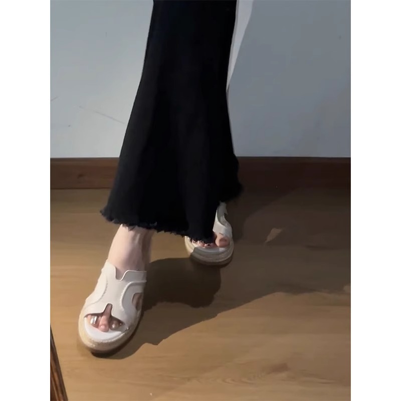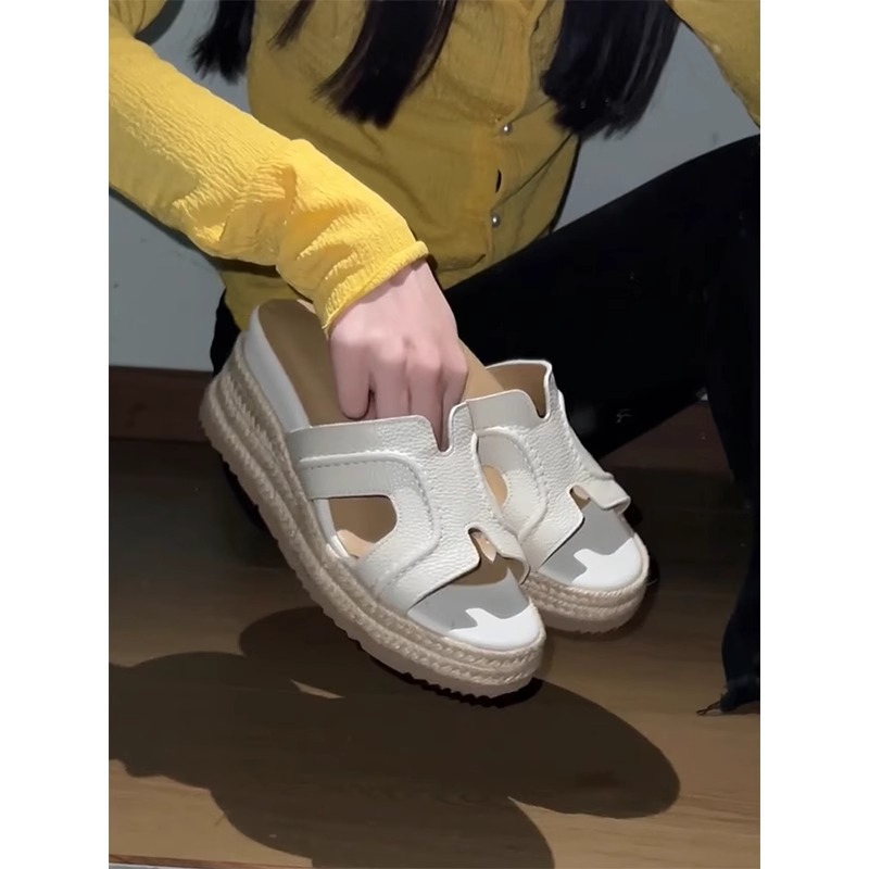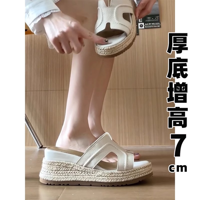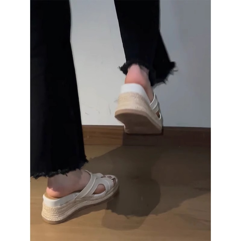 루스 같은 스타일 빈티지 스트로우 두꺼운 바닥 힐 웨지 샌들 여성용 외부 착용 새로운 스타일 여름 2025 슬리퍼 로마스토어 가기