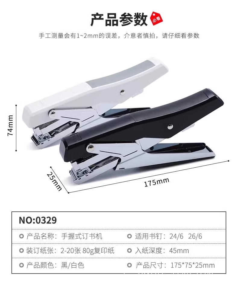 델리 0329 사무실 스테이플러 대형 노동 절약형 휴대용 스테이플러 12호 바인더 도매