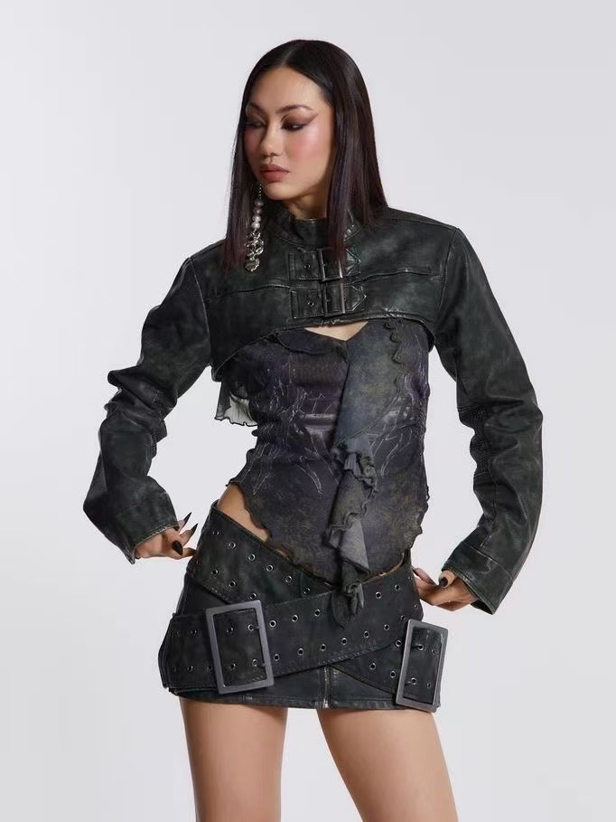 Jaded London Millennium Spice Girl 섹시한 빈티지 PU 가죽 세탁 긴 소매 노출 재킷 코트 여성
