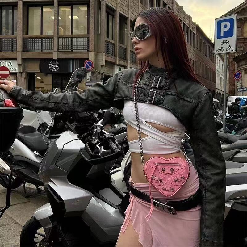 Jaded London Millennium Spice Girl 섹시한 빈티지 PU 가죽 세탁 긴 소매 노출 재킷 코트 여성스토어 가기