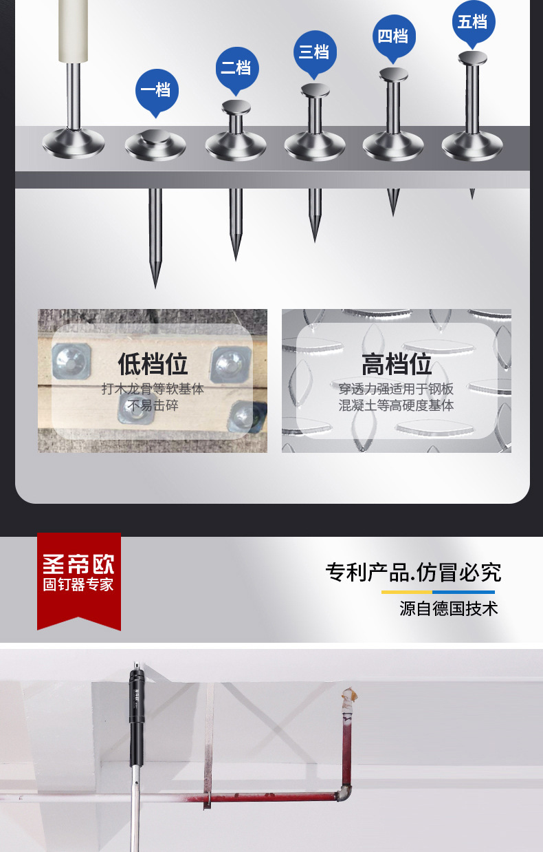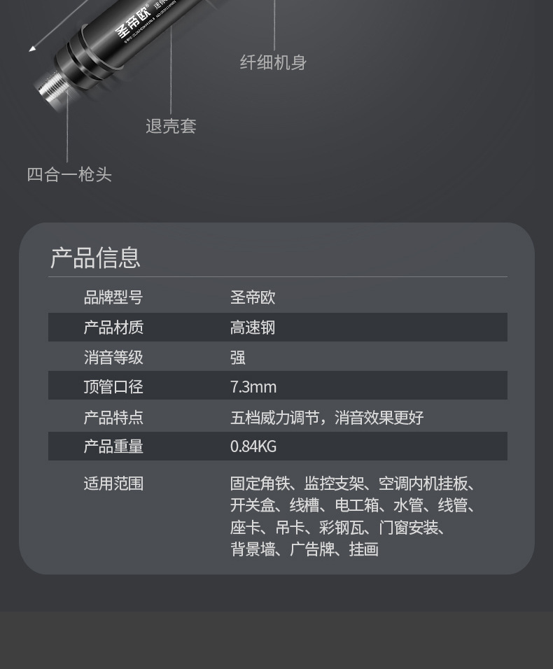 미니 총못총 세인트 디오로 제조업체 전체 강철 못총 벽 고정 일체형 못 콘크리트 소음기