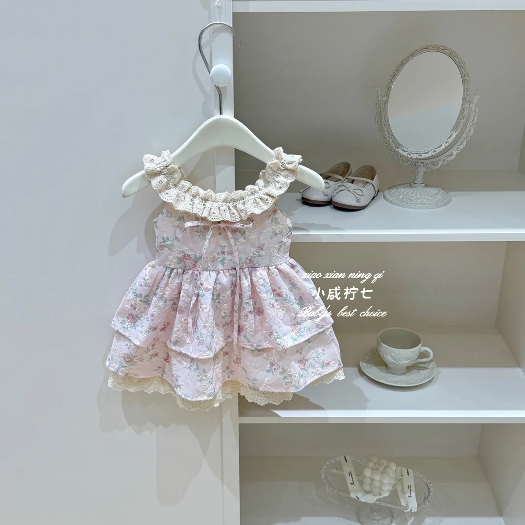 국경을 넘는 칠소칠(七少七) 신상 여아 꽃무늬 원피스, 부드러운 여름 플라워 레이스 소매, 달콤하고 트렌디한 도매