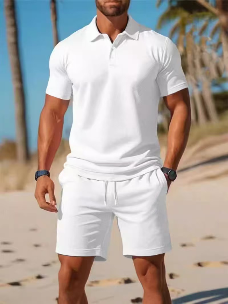 2025 새로운 남성 여름 캐주얼 스포츠 다목적 슬림 반팔 패션 폴로 셔츠 반바지 크로스 보더 슈트스토어 가기