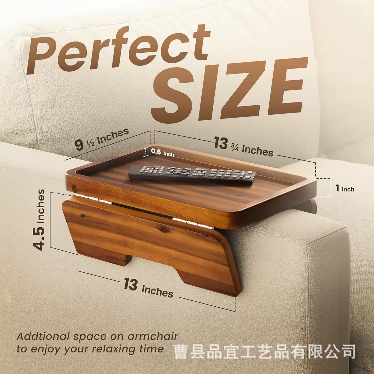 나무 소파 팔 트레이 다목적 레저 소파 팔 트레이 테이블 클립 나무 사이드 테이블 작은 공간 단단한 나무 디너 트레이