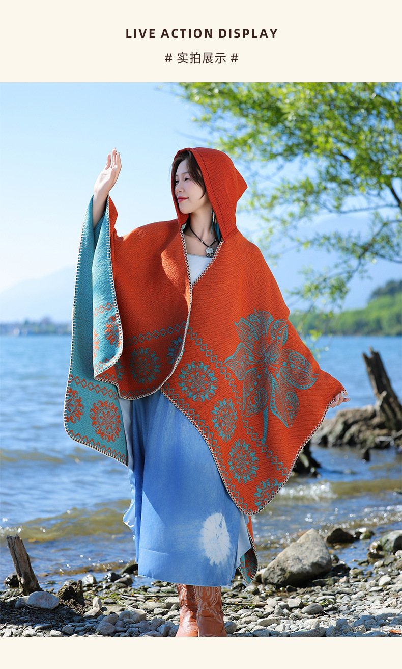 새로운 민족 스타일 숄 스카프 이중 목적 여성 두꺼운 따뜻한 망토 운남 티베트 티베트 여행 망토 다목적스토어 가기